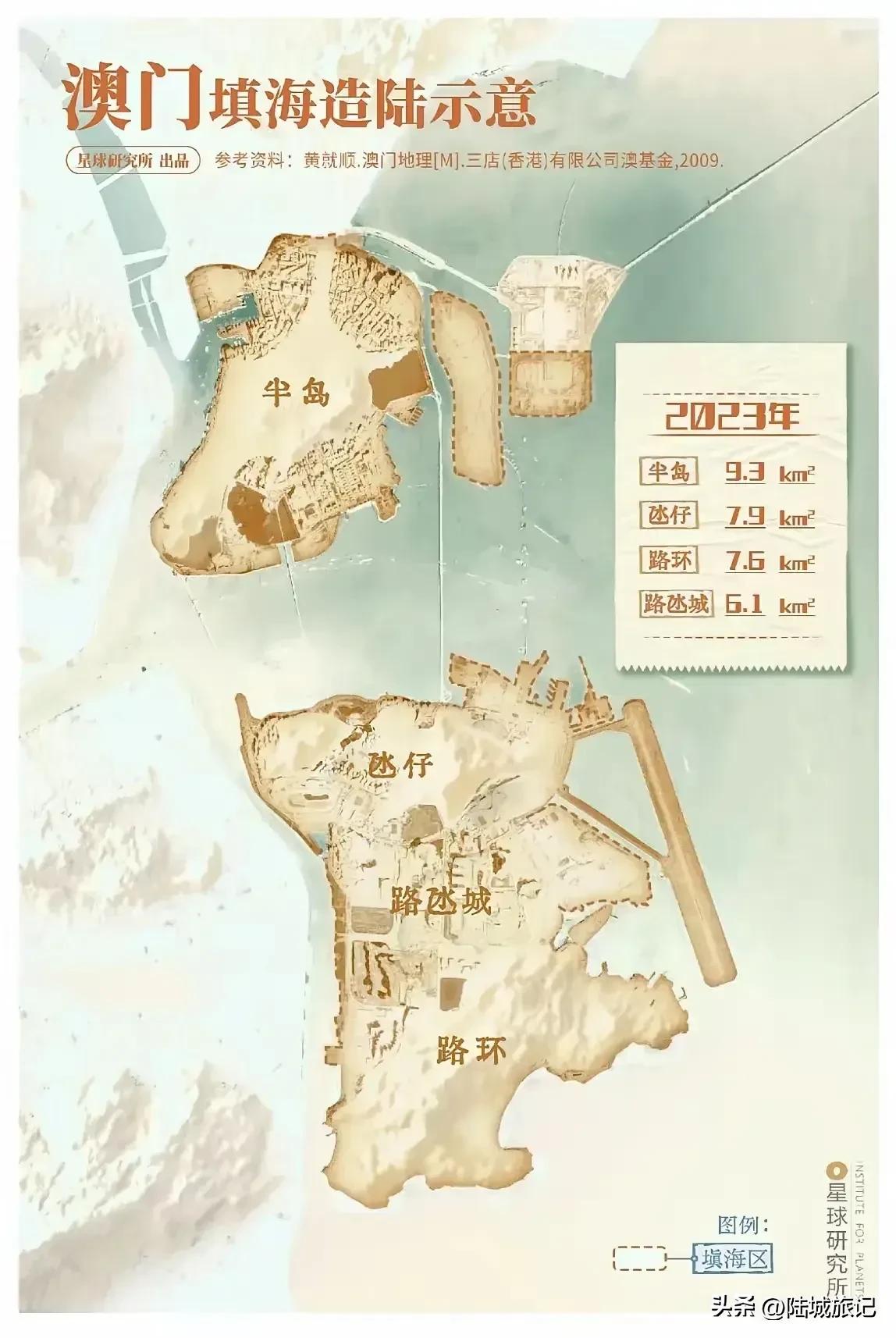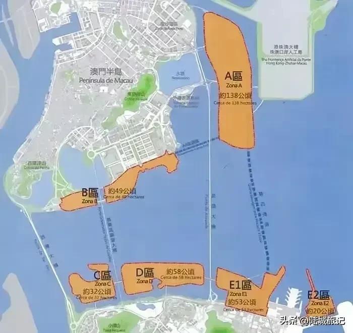 【中国澳门:“东填”、“北造”、“西拓”三套扩容工程方案】: ①现在澳门陆地总面积为33.3平方千米,海域面积达到85平方公里。其中,澳门半岛:9.3;氹仔岛:7.9;路环岛:7.6;路氹填海区:6.1;新城A区:1.4; C区:0.3;珠澳口岸人工岛(澳门侧):0.7。 ②为了强化“粤港澳大湾区”中澳门的影响力和谋划澳门未来产业多元化,布局澳门港口和合作区域,故提出了澳门的“东填”、“北造”、“西拓”三套扩容工程方案。 ③“东填”方案:以“澳门国际机场”为根基,将机场及其跑道向澳门海域东部浅水区域进行推移,重新填海造“新澳门国际机场”,原有的机场跑道打造成为远洋港口(澳门港)。 ④“北造”方案:目前围绕在澳门半岛与氹仔岛之间已经完成了“澳门新城A区”、“澳门新城C区”和“珠澳口岸人工岛(澳门侧)”,未来还将以此为基础在此扩大填海造陆规模范围,其中B区、D区、E区和口岸人工岛南填造陆区也在积极布局之中。 ⑤“西拓”方案:以“粤澳深度合作区”为基础,打造“粤澳同城一体化”合作方案。或在合适时机情况下实现横琴与澳门的合并方案设想。