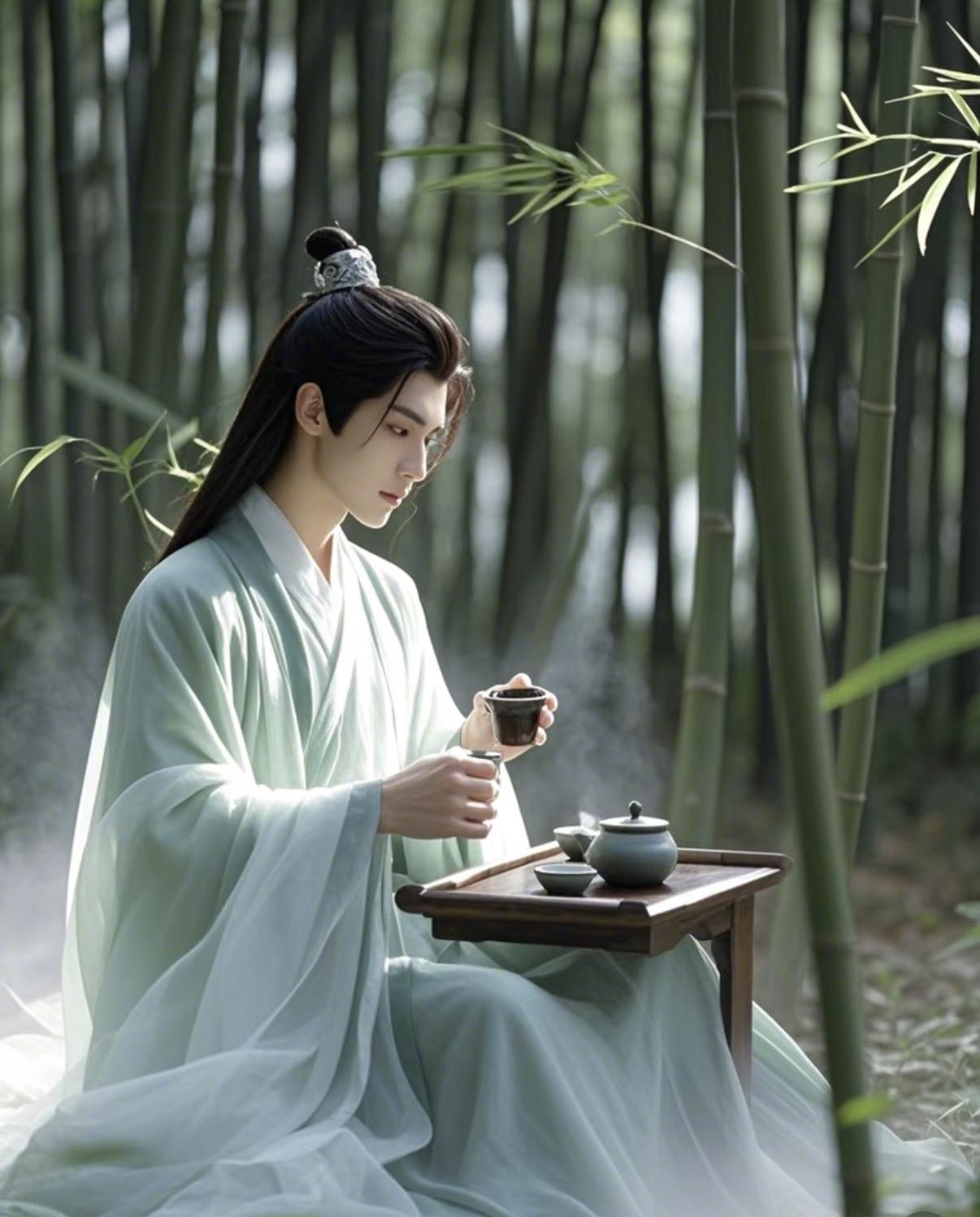 上联:花前我是题诗客 下联:竹下君为煮茗茶
