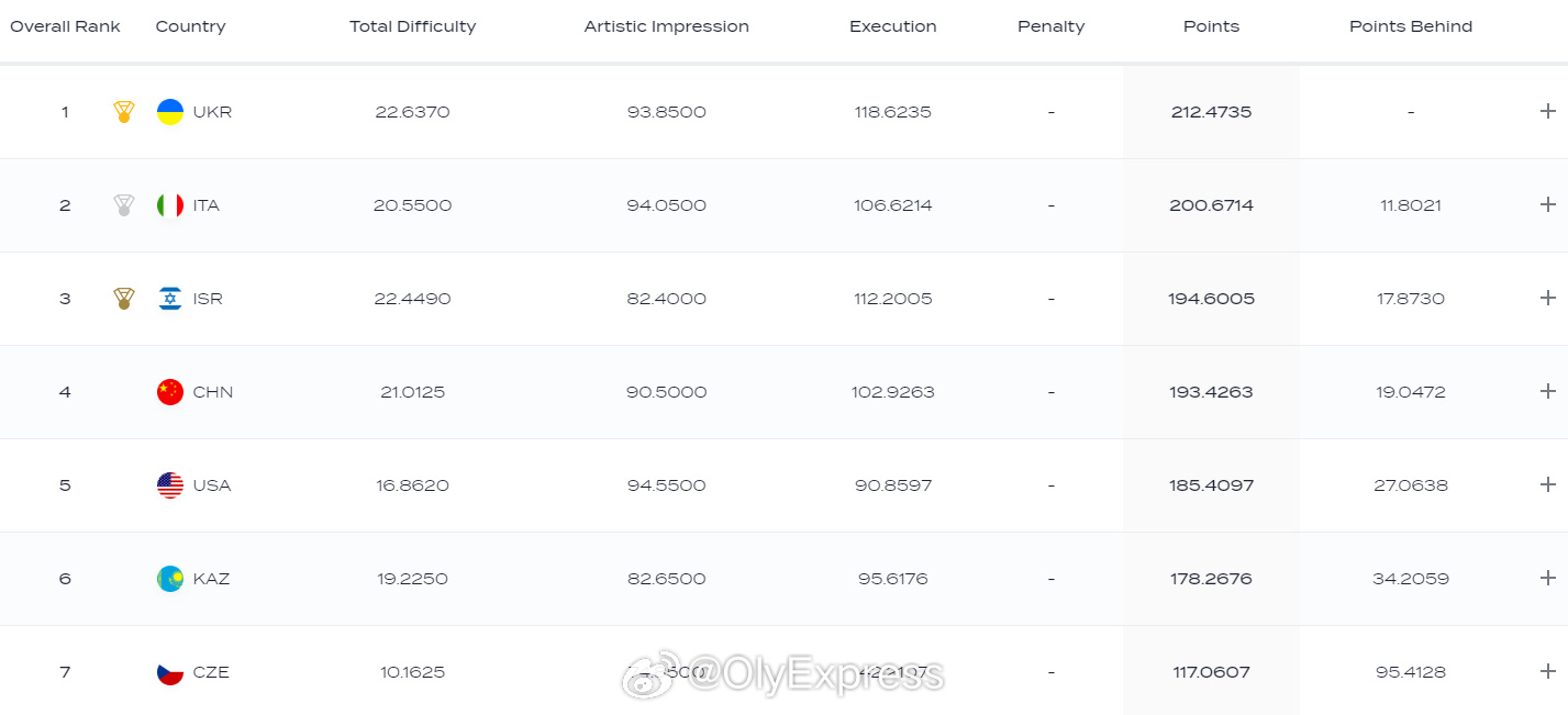 【花游世界杯巴黎站俄罗斯5金高居榜首 中国2金列次席】国际体坛战报速递 3月29日巴黎,花样游泳世界杯巴黎站落幕。在最后一项集体技巧自选比赛中,乌克兰队以212.4735分夺得冠军,意大利和以色列分获银铜牌。中国队名列第四,成绩为193.6005分。在奖牌榜上,俄罗斯队以5金2银2铜高居榜首,中国队2金1银排名次席。