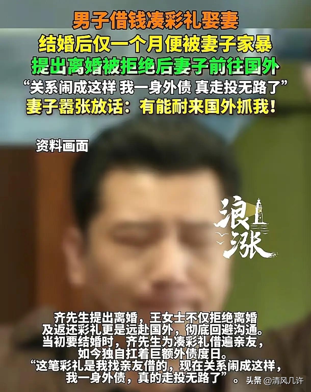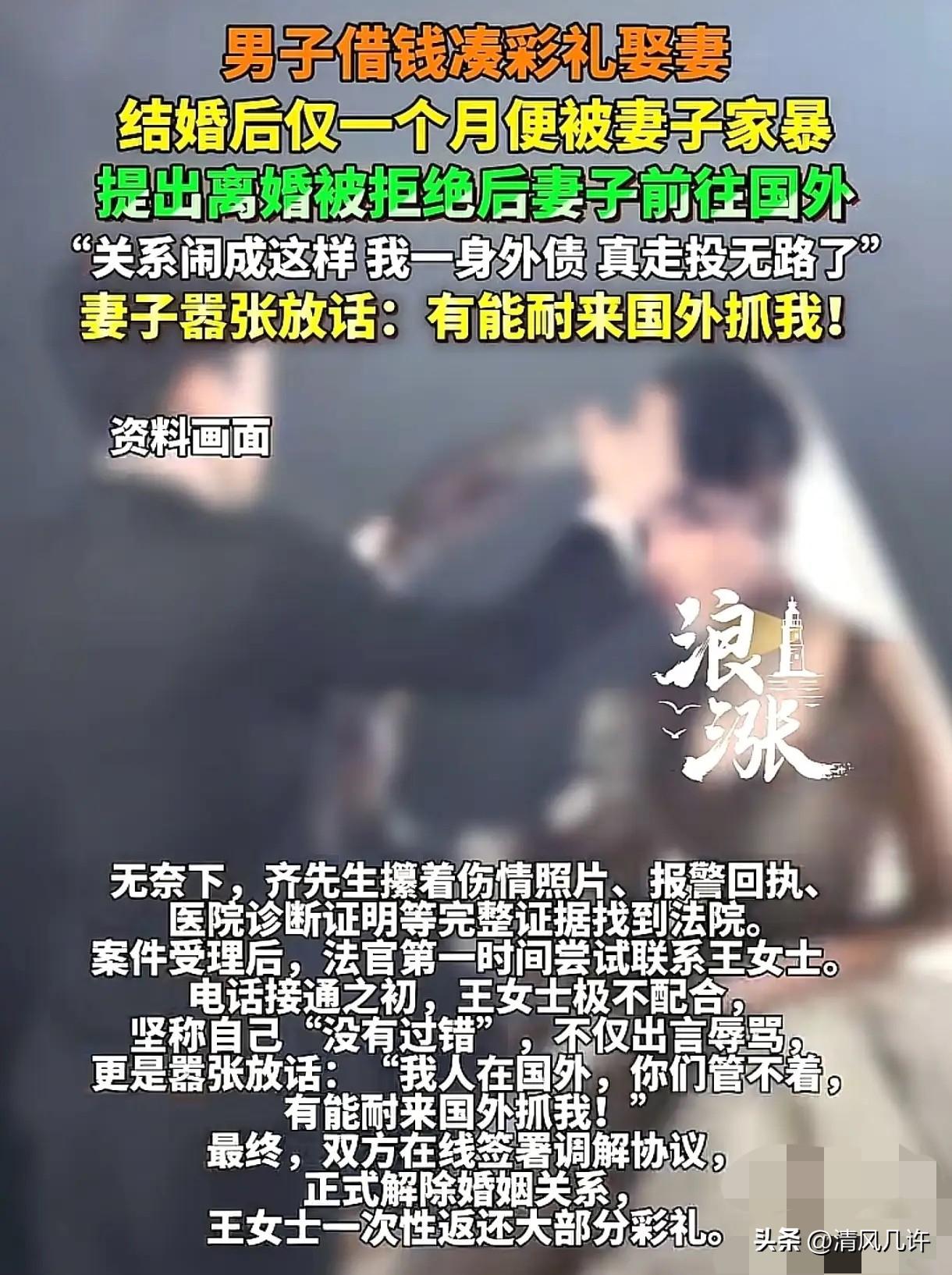 “太难了!”吉林榆树,男子和女子恋爱,女子温柔可人,交往半年,男子凑了彩礼,和女子登记结婚。可婚后两人仅在一起一个多月,妻子经常对男子动手,还持械威胁,男子180的大高个都不是妻子的对手,他长期处于恐惧中,想要离婚,可妻子不但不离婚,还带走彩礼去了国外。男子实在熬不住了,起诉离婚,法院联系女子,没想到女子不仅出言辱骂,更是嚣张放话:“我人在国外,你们管不着,有能耐来国外抓我!”结局让所有人都松了一口气。 这名男子是齐先生,为了凑齐彩礼,他几乎借遍了身边所有亲友,本以为娶回了温柔的妻子,能开启安稳的生活,没料到婚姻竟成了他的噩梦。 婚后仅一个多月,婚前性情温和的王女士就像变了个人,一点琐事就能点燃她的怒火,从最初的辱骂,慢慢升级为推搡、殴打,甚至拿起身边的器械威胁齐先生。齐先生碍于男性身份,一开始选择隐忍,可他的退让换来的是变本加厉的暴力,身高一米八的他,每次回家都要做好被打的准备,连睡觉都不敢睡沉。 2026年1月,又一次家暴后,齐先生终于忍无可忍,选择了报警。他拿着伤情照片、报警回执和医院的诊断证明,走进了吉林省榆树市人民法院环城人民法庭,声音颤抖着向法官提出离婚申请。 可他的离婚诉求刚提交,王女士就收拾行李远赴国外,彻底切断了和国内的联系,摆明了要逃避责任,还放话让齐先生“有能耐来国外抓我”,让齐先生陷入了走投无路的境地。 齐先生的彩礼全是借来的,婚姻破裂后,他一边要面对亲友的催债,一边要承受家暴留下的心理阴影,整个人被压得喘不过气。他看着手里的借条,无数次想过放弃,可一想到自己的遭遇,又不甘心就这样认栽。 案件受理后,承办法官没有因为王女士在国外就放弃,而是多次跨时区拨通她的电话,耐心释法明理。 法官明确告诉王女士,家暴行为本身就违反法律规定,而她拒绝沟通、逃避责任的行为,一旦进入执行程序,将会被依法冻结财产,还会被纳入失信被执行人名单、限制高消费,即便在国外生活也会受到严重影响。同时,法官也点出,两人婚姻存续时间极短,彩礼又是齐先生举债支付,返还大部分彩礼于法于理都站得住脚。 起初王女士态度依旧强硬,言语间满是不屑,可听着法官一条条列出的法律后果,她的语气慢慢软了下来,终于愿意坐下来沟通。为了方便双方参与,法庭组织了线上开庭,隔着屏幕核对证据、厘清事实,最终促成双方在线签署了调解协议。 协议明确,双方正式解除婚姻关系,王女士一次性返还齐先生大部分彩礼。拿到调解书的那一刻,齐先生紧绷了许久的神经终于放松下来,他专程给法庭送去了锦旗,感谢法官帮他走出了这段痛苦的婚姻,也拿回了本该属于自己的钱。 这起案件也打破了“家暴只有女性受害者”的刻板印象,提醒着我们,家庭暴力不分性别,任何人遭遇家暴都要勇敢拿起法律武器保护自己。同时也让更多人看到,即便对方身处国外,法律的约束也不会失效,逃避解决不了问题,最终只会自食恶果。 各位读者你们怎么看?欢迎在评论区讨论。