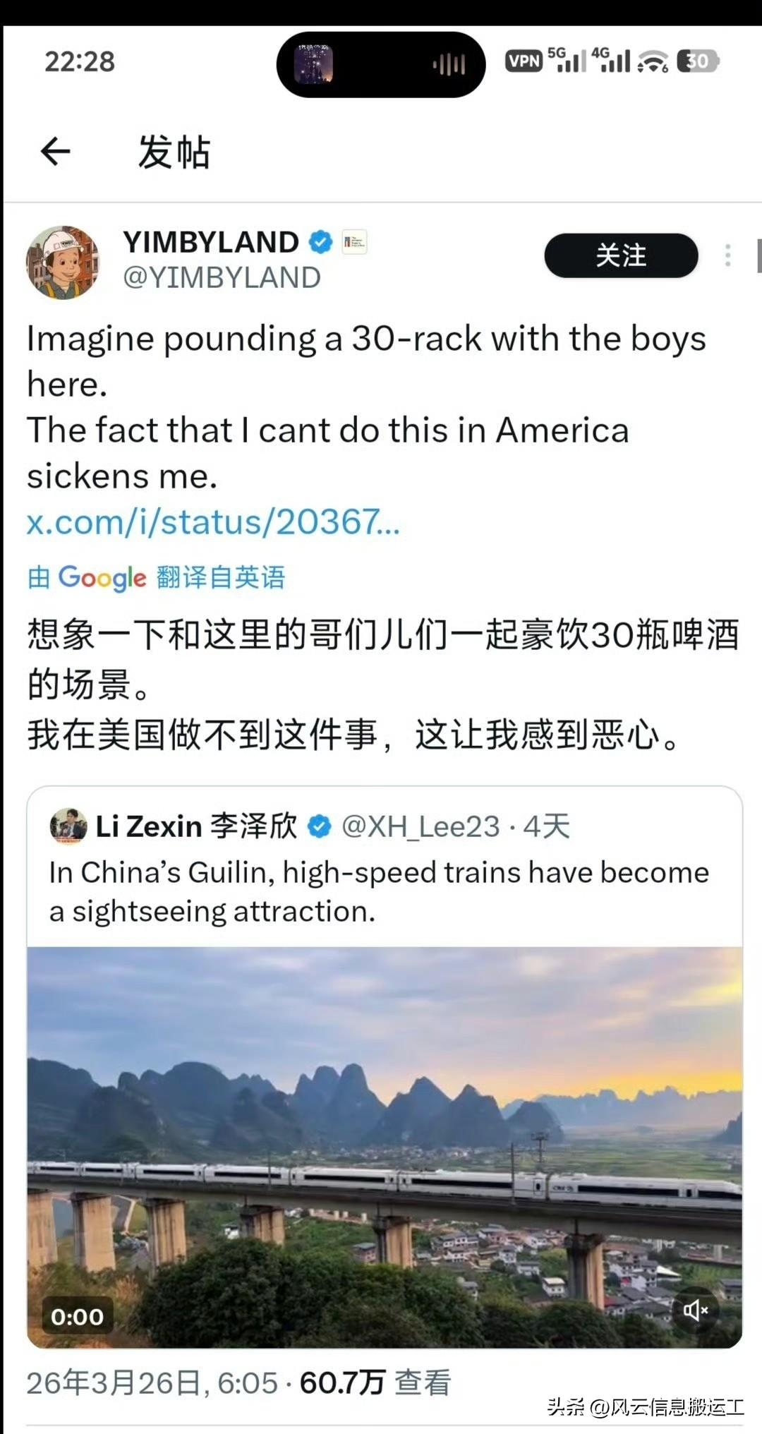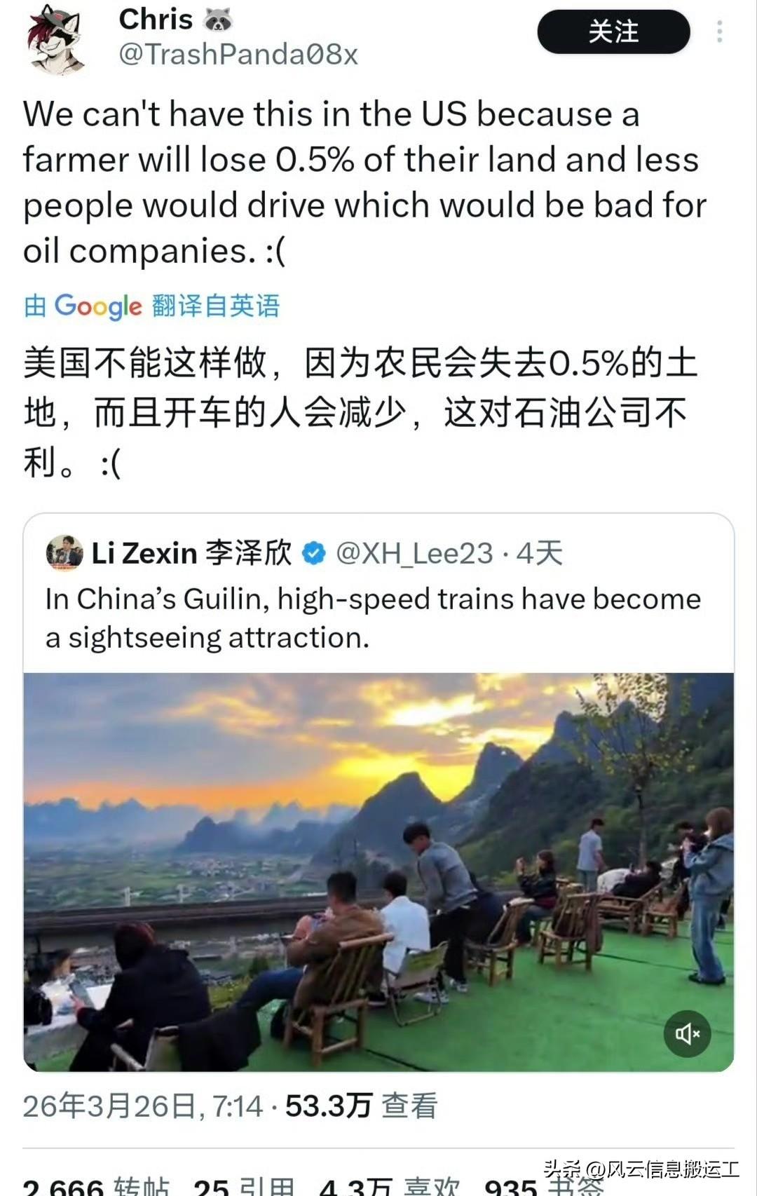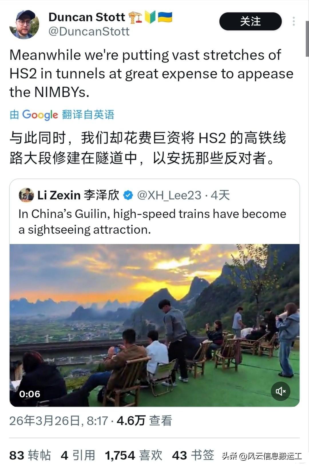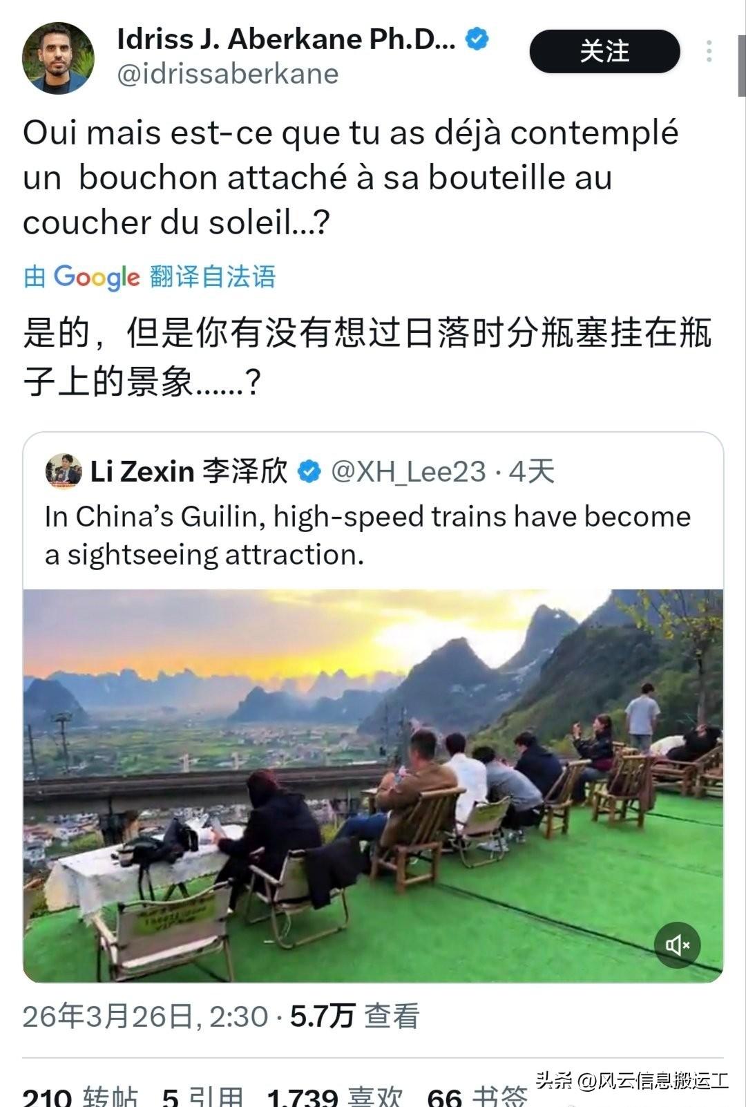 推特上中国桂林高铁与美景相融合的视频引起网友热议!