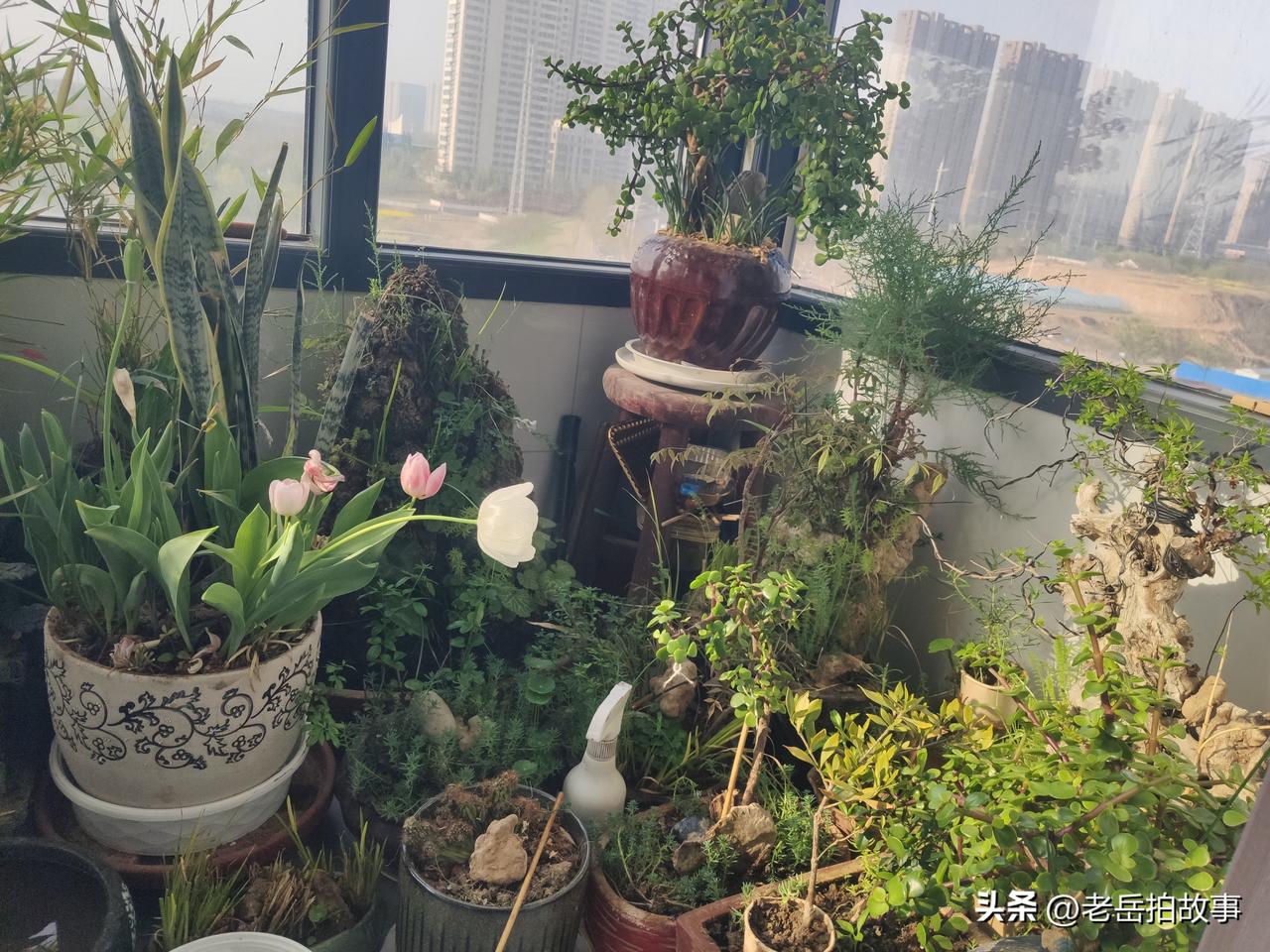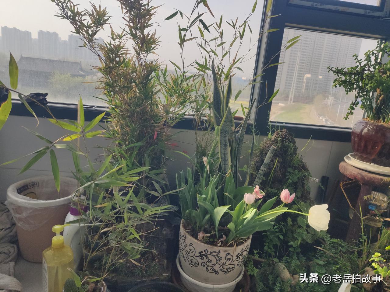 晒晒我阳台上的花花草草,这是我平时花最多精力细心呵护的花草,大多是自己扦插养护起来的,盆里的郁金香是去年人民公园郁金香展结束后,人家丢弃不要的块根儿,我拿了几棵回来晾晒在了阳台上,去年十一月份的时候拿盆埋进去的,今年一开春居然发芽了,并开了好几朵花儿,比公园里的郁金香早开了有一礼拜的时间。有人喜欢打牌,有人喜欢唱歌,有人喜欢健身,我呢,闲来无事,喜欢打点一些花花草草,感觉和这些花花草草在一起十分快乐,心情也会变的愉快些!这也许就是所谓的萝卜白菜,各有所爱吧!至于那两盆竹子,一盆是朋友送的,一盆是我从别人那里分株出来的!不是有一句话吗:“可以一日食无肉,不可一日居无竹”吗!我最喜欢竹子的清雅和虚心,有人形容竹子的品格:“未出土时已有节,极致凌云仍虚心!”多好的形容呀,竹子在地下默默萌动的时候就已经具备了属于自己的气节和品行。即使破土而出,直插云霄的时候,也仍然是虚心的!做人需要学习竹子的品格和气节。晒晒居家养的花 晒晒我的赏花草 秀出我养的花 养在阳台上的花 亲手养出的花 我的阳台绿化