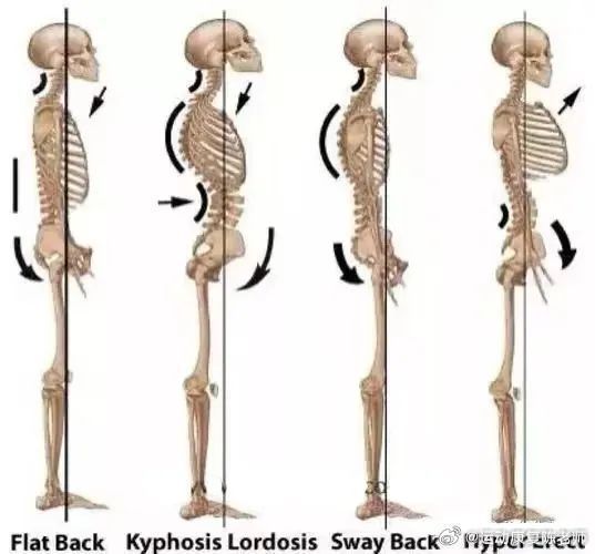 ✅【 如何自我辨别】👉骨盆前移——就是通俗的懒汉站,侧对镜子,如果股骨大转子在外踝以及头前方,则是骨盆前移(图7中间)