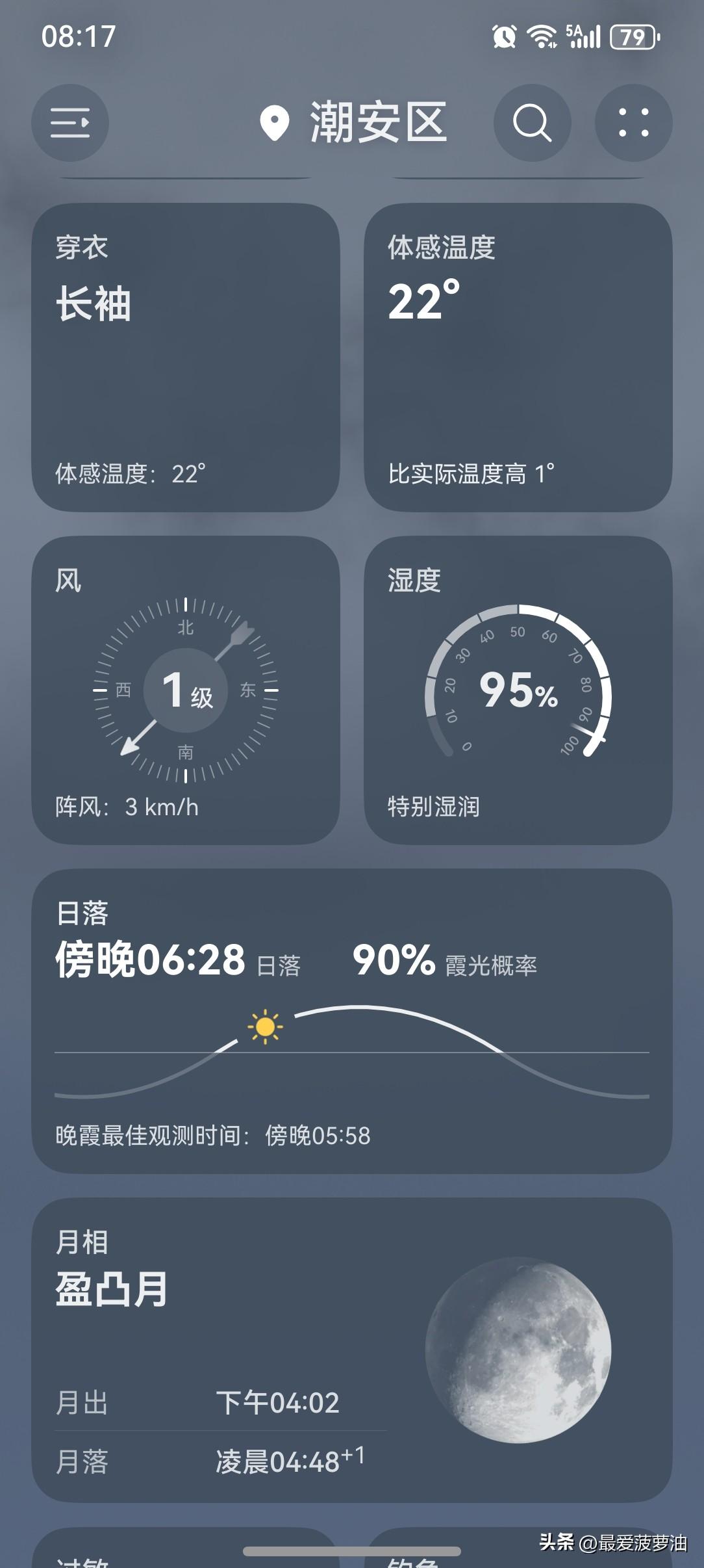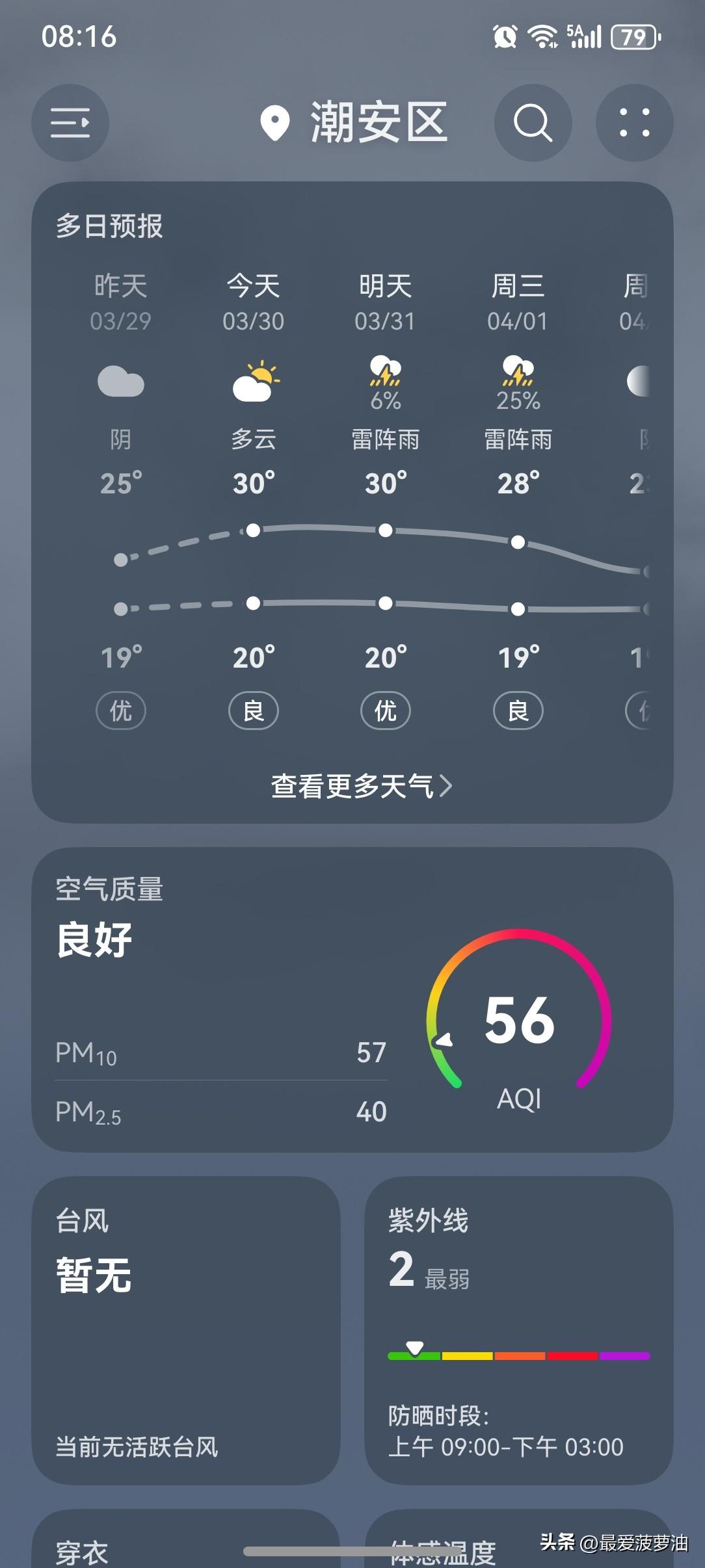 今天(30日),潮州喜提一个多云天气,气温20~30℃,此刻气温21℃,体感温度22℃。