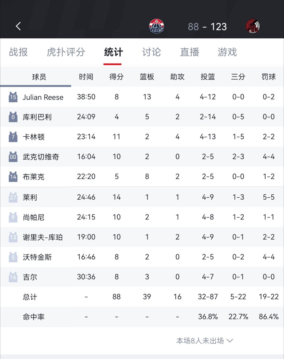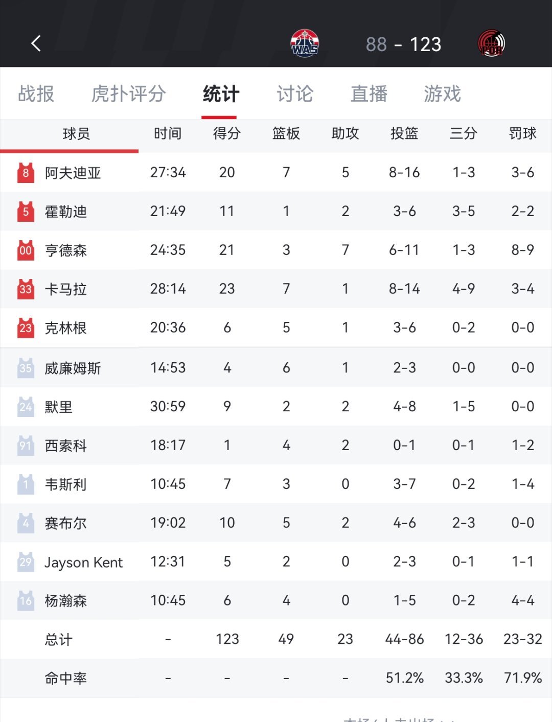 奇才狂输开拓者35分!明天背靠背对阵湖人