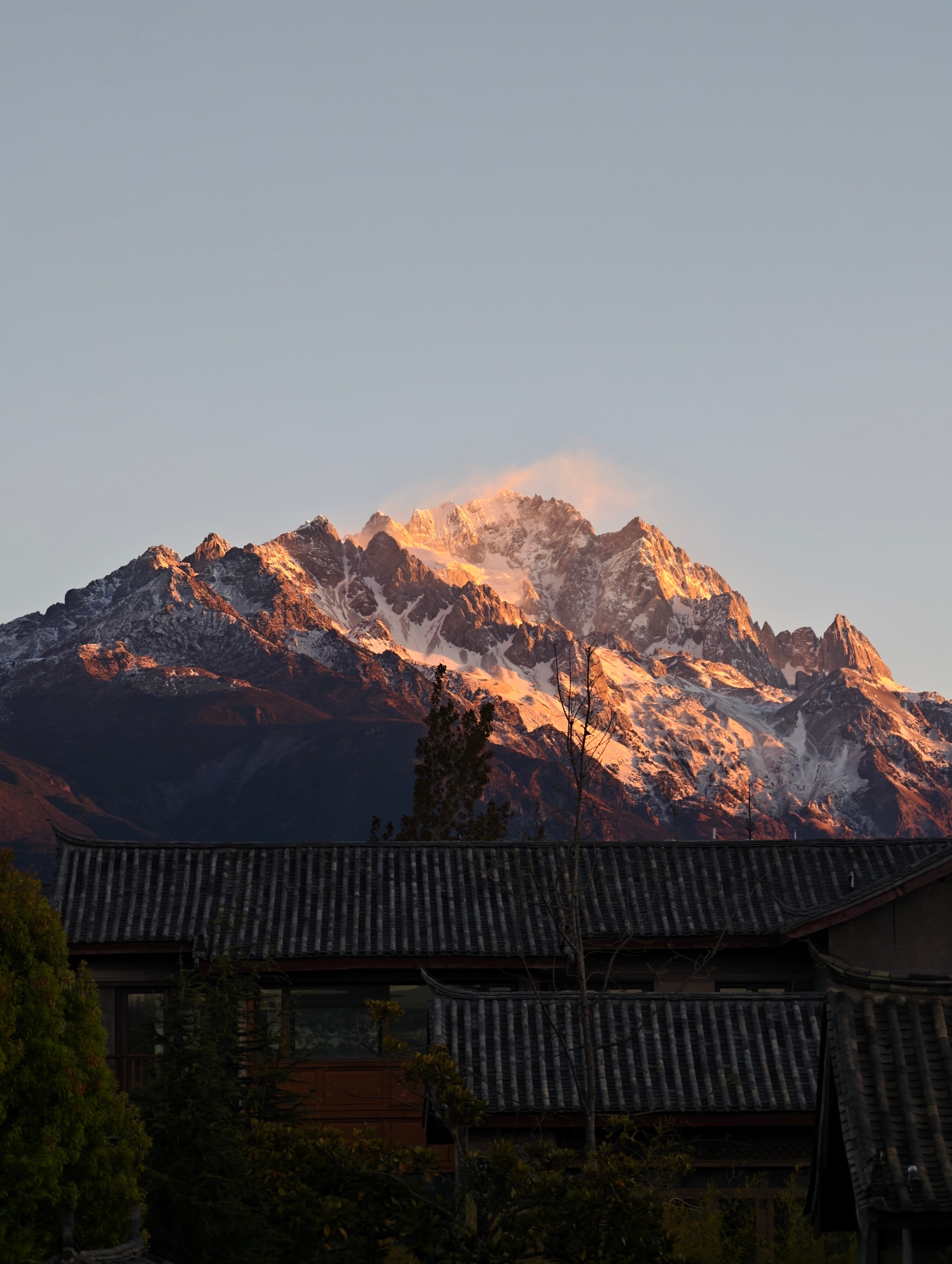 早上醒来就从酒店看到日照金山了,这也太美了吧 丽江·丽江金茂隐逸酒店·凯悦臻选