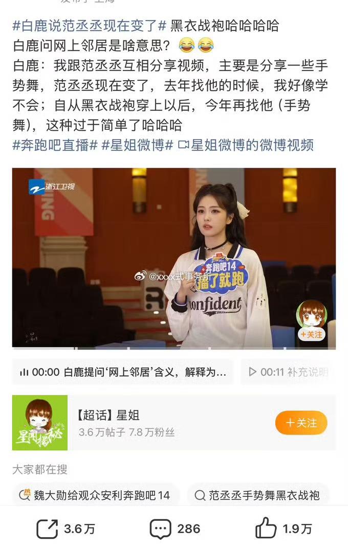 快来嗑白鹿爆料的趣味日常,实在太搞笑了! 直播里白鹿还一脸疑惑问网友,网上邻居到底是什么梗。 还聊到自己平时总跟范丞丞互相分享短视频,主打交流各种手势舞。 白鹿直言范丞丞现在真的不一样了,去年找他学舞还觉得难度超高跟不上。 自从穿上黑衣战袍气场全开后,整个人直接进阶, 如今再看以前的手势舞,都觉得太过简单看不上眼,这成长反差感也太真实好玩了!
