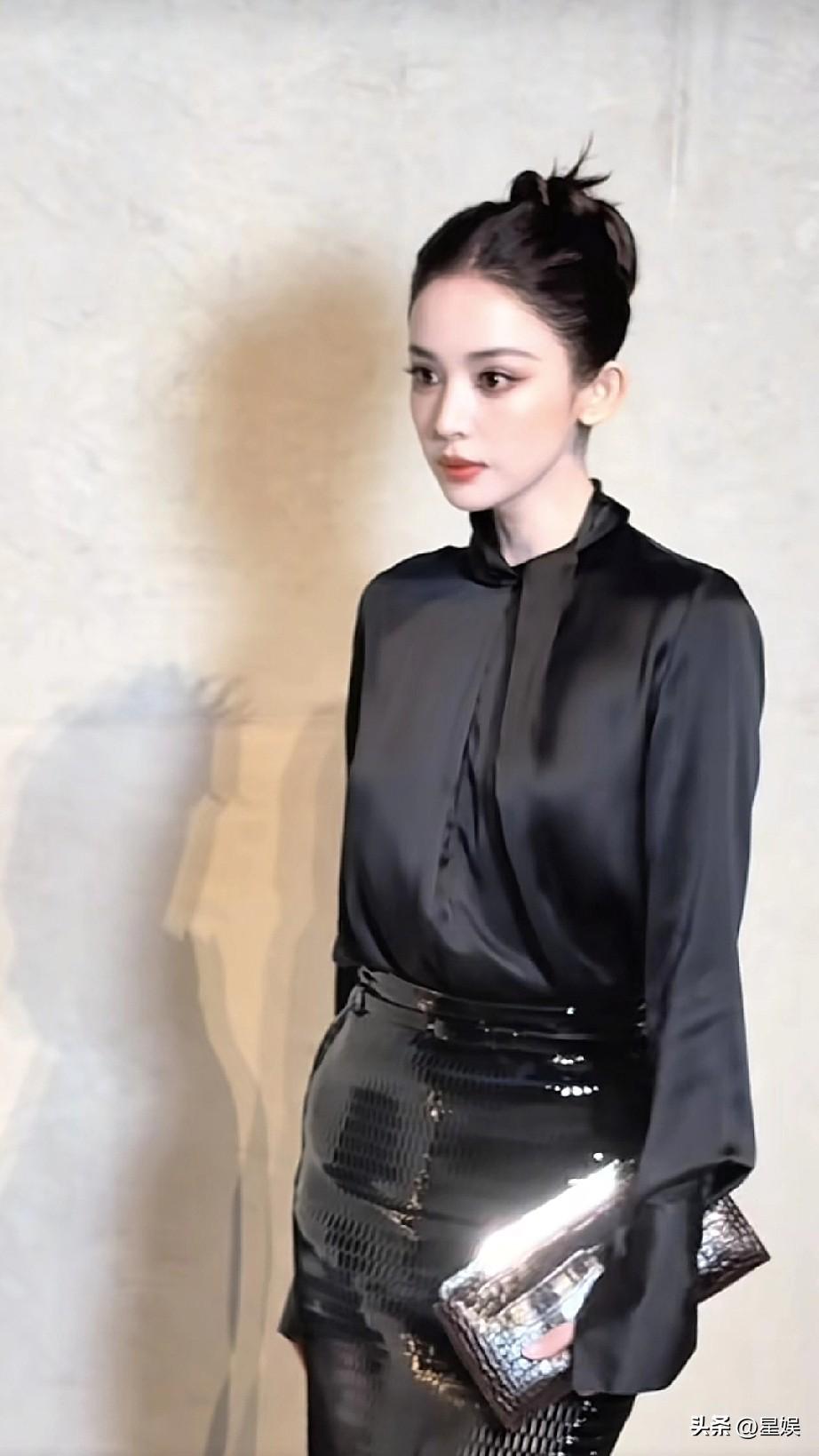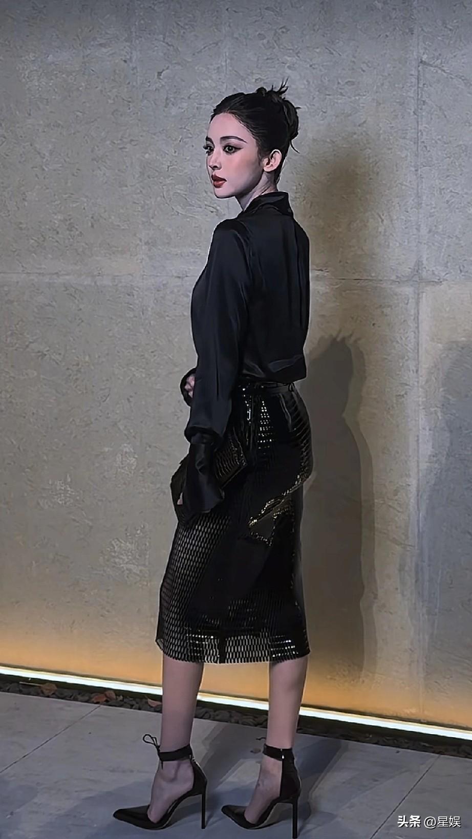 娜扎黑色皮裙