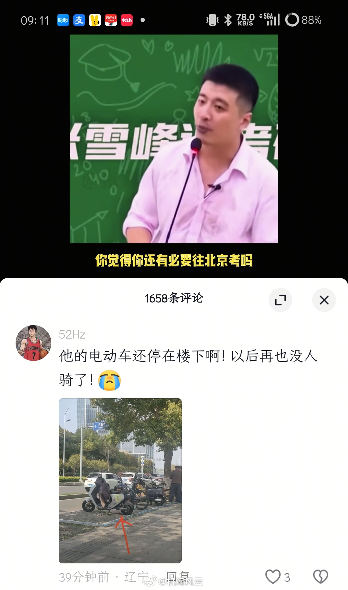 张雪峰生前骑的电动车,被网友拍到仍停在公司楼下,唉π_π