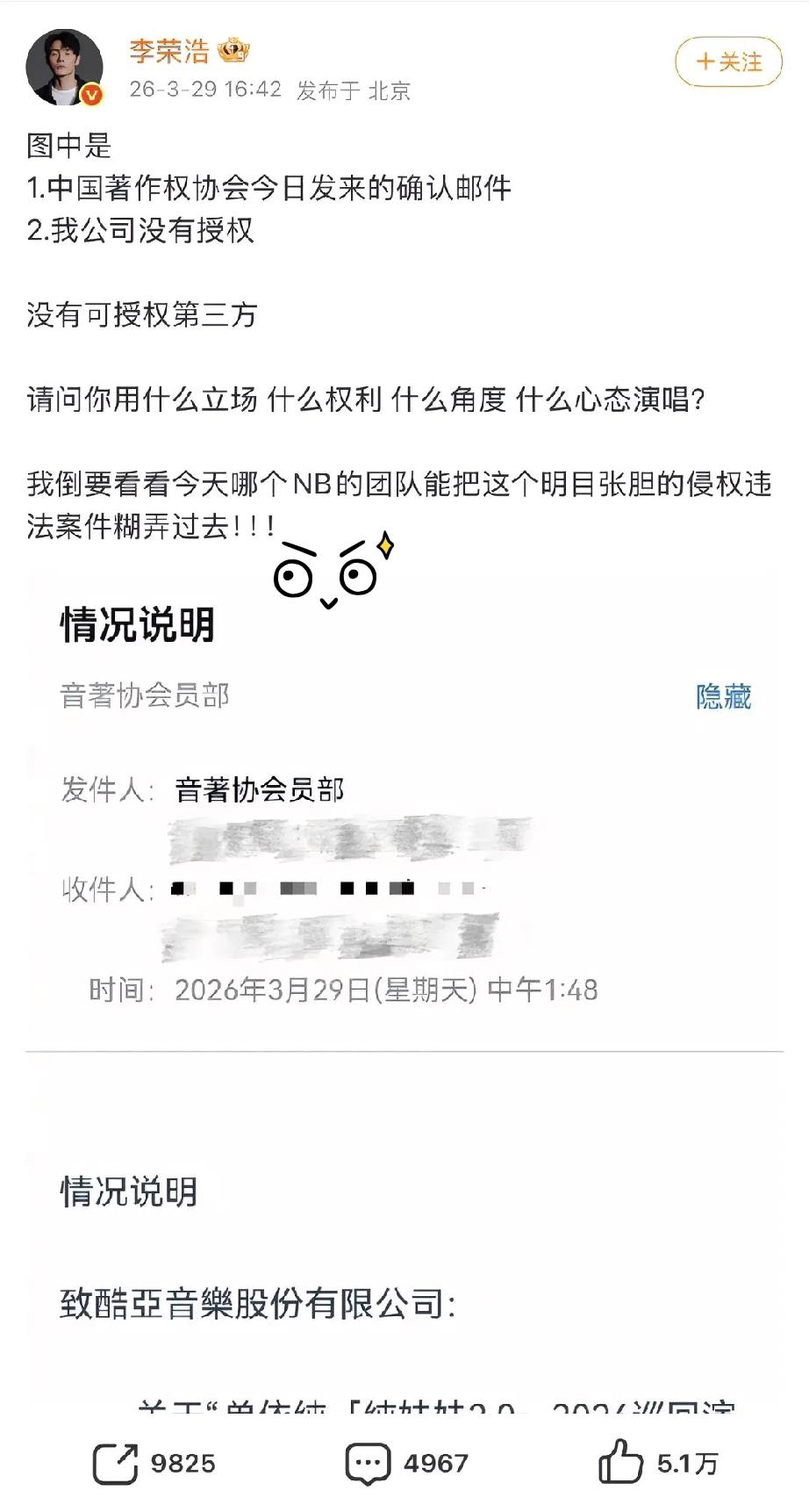 李荣浩和王楚钦,一个唱歌一个打球 一个一人承担所有,除了打鼓 据说昨天开始自学著作权法了 一个一人撑起所有,除了女双哦对了 也曾经上过WTT女双世界排名榜首 这是两个不爱用标点符号的小眼男人 看把李荣浩气的都会使用标点符号了 那惊叹号都用了仨!!! 估计眼珠子也都瞪出来了 王楚钦的眼镜从葡萄干变成小葡萄眼 是从什么时候开始的呢 可惜现如今只见黑眼圈和大眼袋了 不得不说,李荣浩挺刚 确实,凡事都有规则,有法必依 怕就怕好人受了委屈都没有说理的地方 坏人作为既得利益者 不仅沾沾自喜还说是好人笨小心眼 周一了,李荣浩说暂告段落保留权利 澳门世界杯开赛,王楚钦继续努力 加油,你可以!必胜!