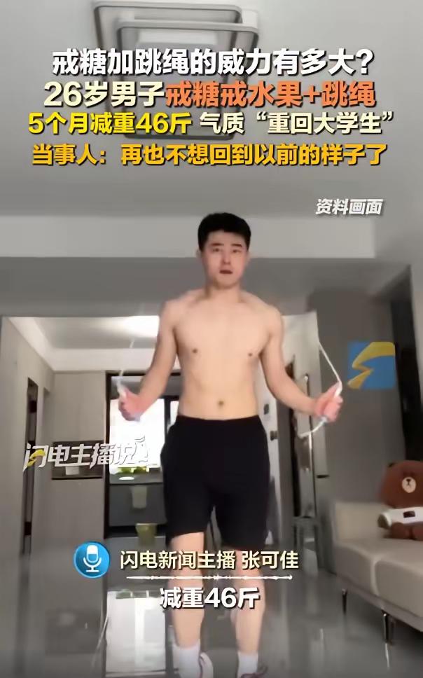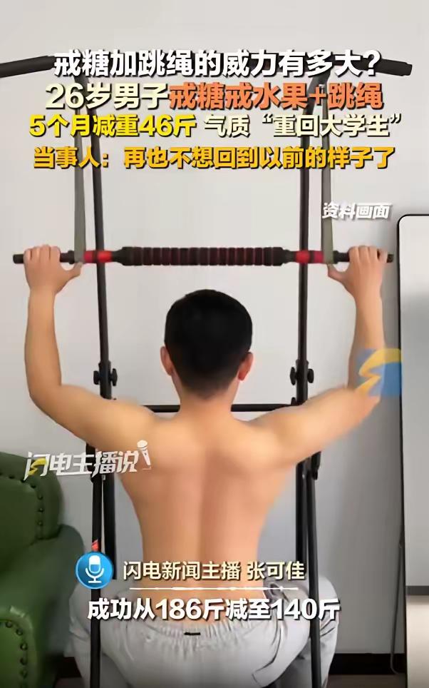“太有毅力了!”山东临沂,一男子体重高达185斤,他为了改变自己,坚持戒糖戒水果,还每天进行跳绳和力量锻炼,在5个月后,男子成功减重46斤,气质身材一下变回大学生,男子坦言再也不想回到以前的样子!网友:活该他变帅!   最近山东临沂一个小伙的减肥经历,刷爆了全网,可能有人觉得减肥不算啥,但真正能坚持下来不半途而废的,真没几个,这个小伙就做到了。   男子今年27岁,就是临沂本地的普通上班族,身高175cm,以前体重飙到了185斤,整个人看起来特别臃肿,走几步路就喘,平时上班也没精神,连出去玩都提不起劲。   后来去检查,还查出了脂肪肝,血压也有点偏高,加上当时正在筹备结婚,看着镜子里油腻的自己,他终于下定决心必须改变,再也不想回到以前的样子。   说起来,他以前的饮食习惯是真不好,特别爱吃西瓜草莓这些水果,烧烤啤酒更是家常便饭,嘴馋起来根本没节制,加上上班压力大,不爱运动,体重就一点点涨上来了。   减肥刚开始,身边人都不看好,觉得他就是三分钟热度,毕竟以前他也有过运动的念头,从来没坚持超过几天,但这次,皮东辉是真的动了心,他没有去健身房,也没有请专业教练,就是靠自己摸索,管住嘴迈开腿。   饮食上,他彻底戒了奶茶和各种零食,连水果都暂时戒掉了,不是说水果不好,而是当时为了严格控糖,他只能先暂时放弃,饿了就吃一根黄瓜或一个西红柿垫一垫。   三餐也很规律,早餐吃燕麦牛奶保证营养,午餐选低热量的,晚餐赶在下午5点前吃完,配菜大多是鸡腿黄瓜和西红柿,避免晚上摄入过多热量。   运动方面,他选了跳绳,毕竟不用占太多地方,也不用花太多钱,每天早上,他都会跳30分钟,采用间歇性跳法,跳50个休息一会儿,再继续跳,循环往复,每跳3天就休息一天,避免身体过度疲劳。   后来为了巩固效果,他又从网上买了哑铃,晚上下班抽30分钟练力量训练,同样是练3天休1天,刚开始肌肉酸痛得厉害,抬手弯腰都费劲,但他总说,疼就说明有效果,咬咬牙就过去了。   减肥的过程肯定不好受,他也有饿到睡不着的时候,也有想放弃的瞬间,但一想到自己的初衷,想到镜子里臃肿的自己,就又坚持了下来。   没想到,效果来得比想象中快,第一个月就瘦了20斤,看着体重秤上的数字,他更有动力了,就这么坚持了5个月,皮东辉成功减重46斤,体重降到了140斤左右,整个人的变化太大了,气质和身材直接变回了大学生模样.   以前的脂肪肝没了,血压也恢复了正常,每天精力满满,上班有干劲,心态也变得更积极乐观,他坦言,现在这样的状态特别好,清爽又有活力,再也不想回到以前那种没精神的日子。   网友们看到他的前后对比,都忍不住点赞,有人说“自律的人真的会发光”,还有人调侃“活该他变帅,这都是他应得的”。   其实减肥没有什么捷径可走,男子能成功,靠的就是坚持和自律,很多人减肥都败在半途而废,要么管不住嘴,要么迈不开腿,而他做到了,哪怕过程再难,也没有轻易放弃。   他的经历也告诉我们,只要真的想改变,愿意付出努力,坚持下去,就一定能看到不一样的自己,不用追求快速减肥,循序渐进,踏踏实实地坚持,终会遇见更好的自己。