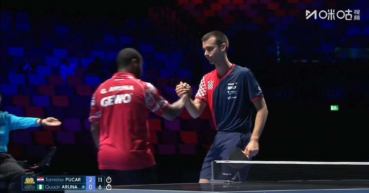 普卡🇭🇷赢了, 阿鲁纳🇳🇬输了, 刚刚,2026澳门国际乒联单打世界杯男单第一阶段小组循环赛第一轮, 克罗地亚名将普卡🇭🇷直落三局,3-0击败非洲一哥阿鲁纳🇳🇬,获得首轮胜利,三局比分为:11-4,12-10,11-6。 普卡和阿鲁纳在我的印象中实力是差不多的,阿鲁纳现在换了新教练,昨天这个新教练还说要努力击败松岛辉空,但看来阿鲁纳运气不佳。