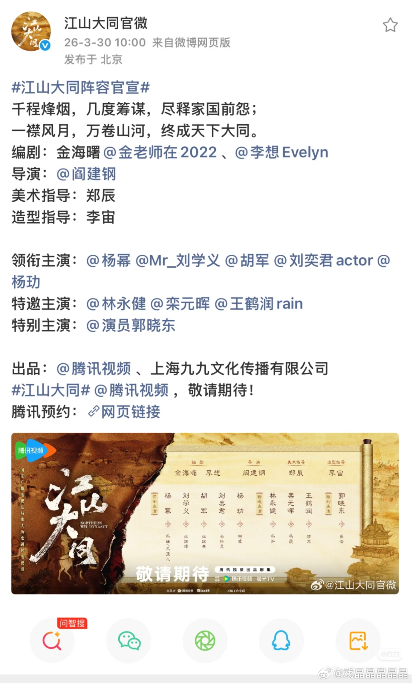 江山大同官宣,这次杨幂没能够大回车一下,不是大女主剧吗?