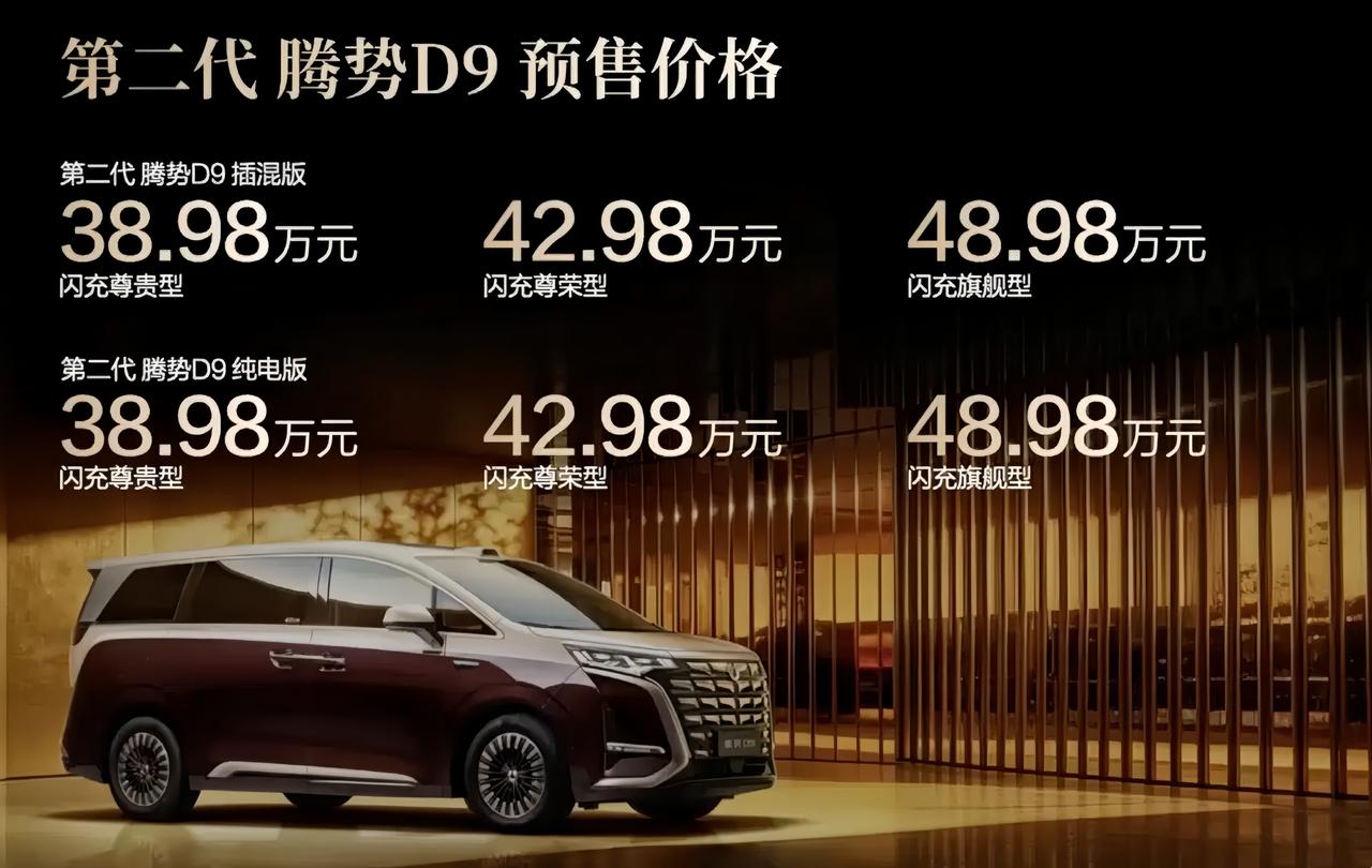 💬说实话,腾势D9这次不像小改款,更像是把短板集中补了一轮。EV和DM都往“更强续航+更强辅助驾驶”上走,产品力比以前完整多了。可预售价也明显更敢开口,38.98万-48.98万元,说明它已经不满足只做销量车了,而是想继续抢高端MPV话语权。就是不知道大家会不会买账,毕竟这个价位,选手真不少了🔥【来自懂车帝车友圈】
