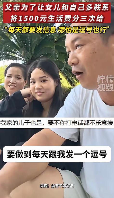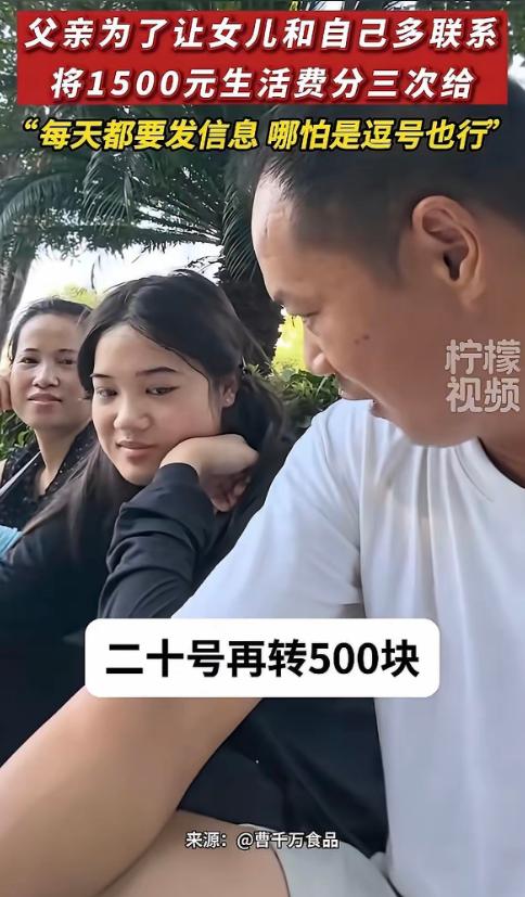 “这父亲火了!”湖北,一男子送女儿上大学,为了让女儿跟他多联系,他立下规矩,说每月生活费1500,但分3次给,如果女儿能每天坚持给家里发个消息报平安,哪怕发个逗号也行,那月底考核再发500,相当于一个月2000块。网友:生活费搞得像发工资,还带绩效考核,太累了!   最近湖北一位父亲彻底火了,起因就是送女儿上大学时,和女儿定了个特别的生活费约定,被网友拍下来发到网上,一下子就引发了全网讨论。   这位父亲姓曹,今年43岁,是湖北仙桃人,只有初中文化,在农村养鸭已经9年了,每天凌晨4点就得起床忙活,辛苦得很。   他的妻子在宜昌开服装店,家里还有一个小儿子在读初中,一家四口分居在四个地方,聚在一起的时间很少,这次送的是家里的大女儿,18岁,这是家里第一个大学生,也是女儿长这么大第一次出远门,去武汉上大学。   怕女儿出门在外不跟家里联系,曹先生就跟女儿拉钩立下了规矩,每月总共2000元,分4次发放,每月1号、10号、20号各转500元,剩下的500元算是“月底全勤奖”。   而条件特别简单,只要女儿每天主动给家里发一条消息就行,哪怕就发一个逗号一张随手拍的照片,或者一段十几秒的短视频,只要能让家里知道她平安,就算完成任务。   曹先生当时还笑着跟女儿说,这下你必须理我了,随手拍了视频发上网,没想到一下子就火了,网友们的看法分成了两派,吵得不可开交。   有不少网友吐槽,说这生活费搞得跟发工资一样,还带绩效考核,太折腾了,女儿都上大学了,还这样约束,活得太累,但也有很多网友特别理解曹先生,尤其是那些为人父母的,都说懂这种心情。   其实曹先生根本不是想为难女儿,也不是舍不得那500块钱,就是太牵挂,他后来也解释了,女儿性格内向,不爱表达,这是第一次独自生活,做父母的哪能放得下心。   而且他也说了,这2000元只是基准,要是女儿不够花,随时可以再补,就算忘了发消息,那500元也不会真的扣,不想给女儿添心理压力。   现在这个约定已经实行了一段时间,效果比想象中好很多,女儿不仅每天都主动联系家里,还会分享很多校园里的小事,比如学校洗澡要刷卡,洗衣服有洗衣机,室友都很友好之类的,这些细碎的日常,成了曹先生夫妇最大的慰藉。   曹先生还说,武汉离仙桃不远,他争取每个月都去学校看一次女儿,其实仔细想想,这件事根本没什么对错,曹先生没想着管控女儿,只是用了一种最朴素的方式,给女儿一个主动联系家里的理由。   对于内向的女儿来说,这样低门槛的约定,反而没有心理负担,网友们的争论,本质上就是父母的牵挂和孩子的独立之间的小矛盾。   养儿一百岁,常忧九十九,尤其是孩子第一次离开家,父母的牵挂真的藏不住。曹先生的方式或许不是最完美的,但那份心意是真的。   不用过分指责,也不用过度夸赞,说到底,就是一位普通父亲,用自己的方式,守护着第一次远行的女儿,这份牵挂,值得被理解。