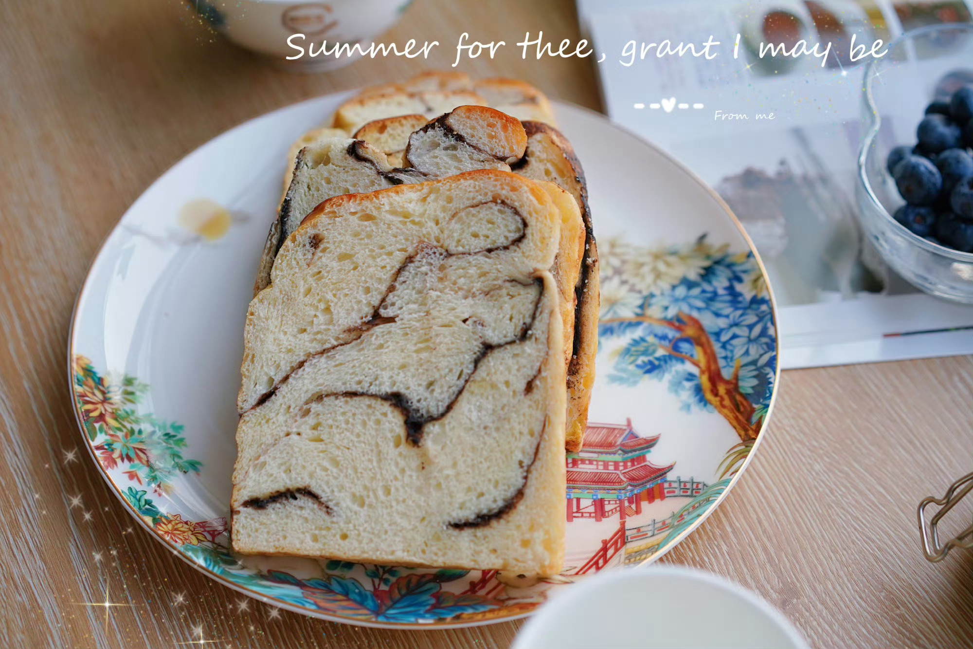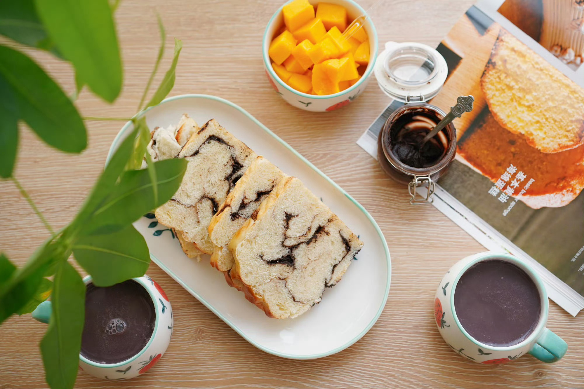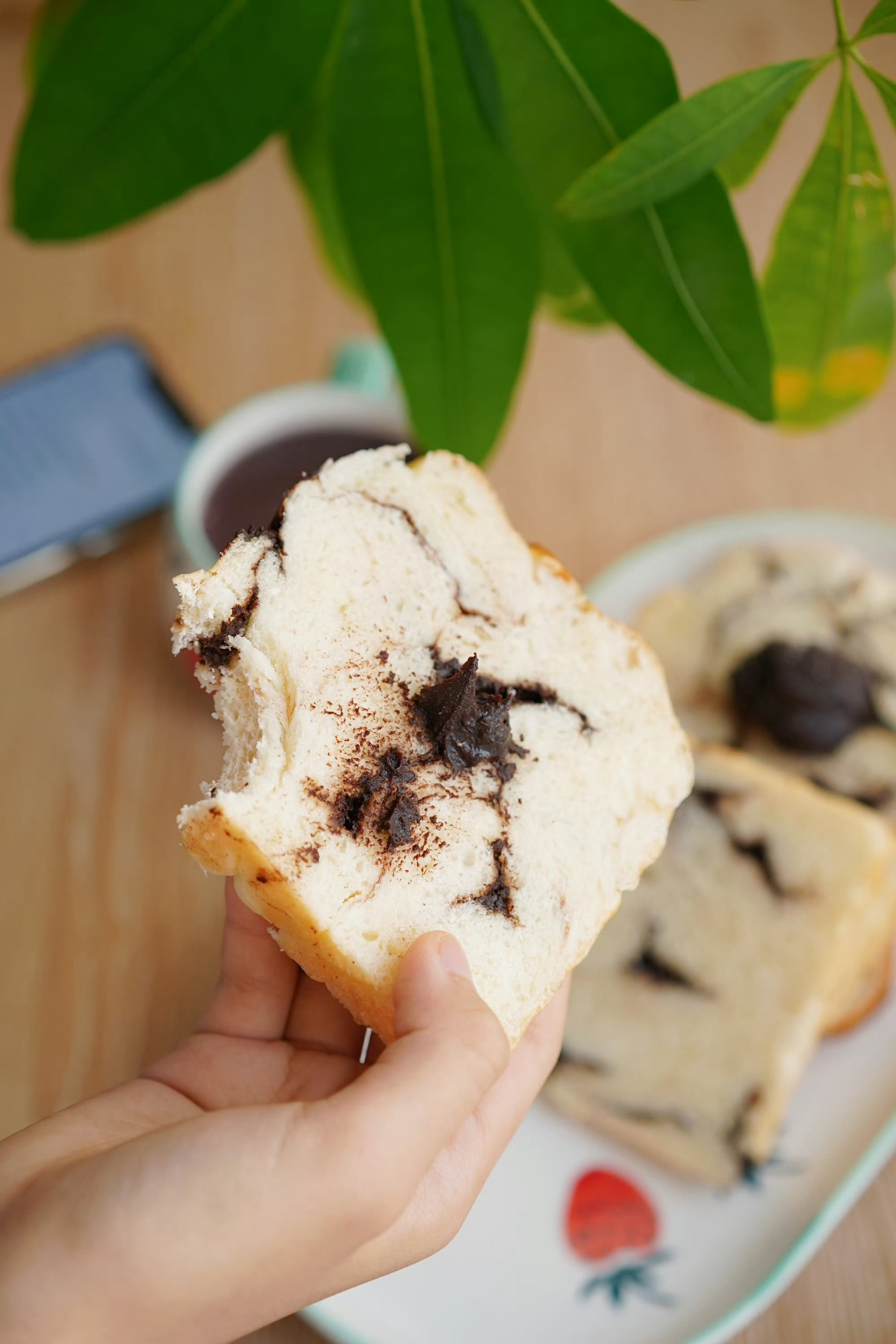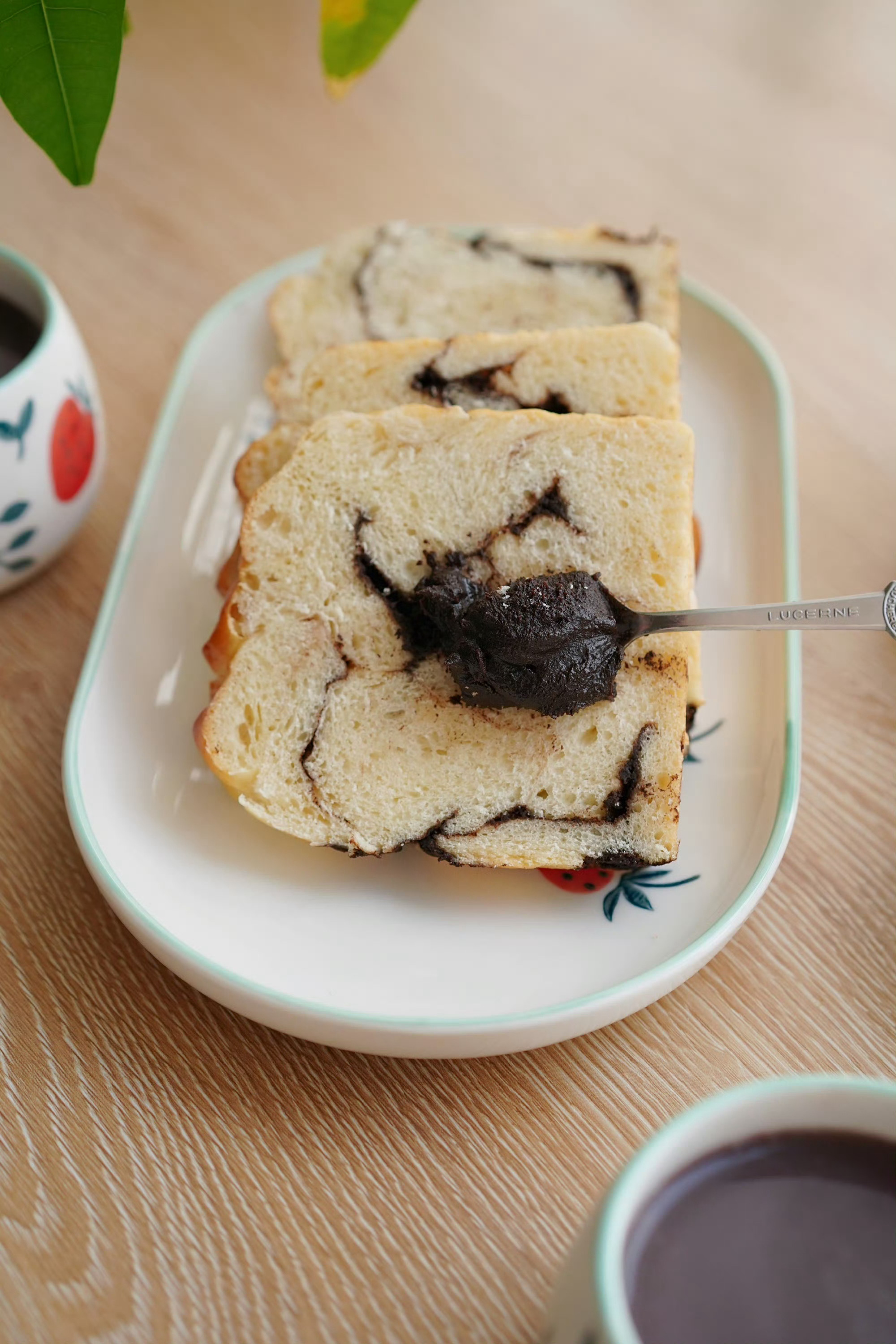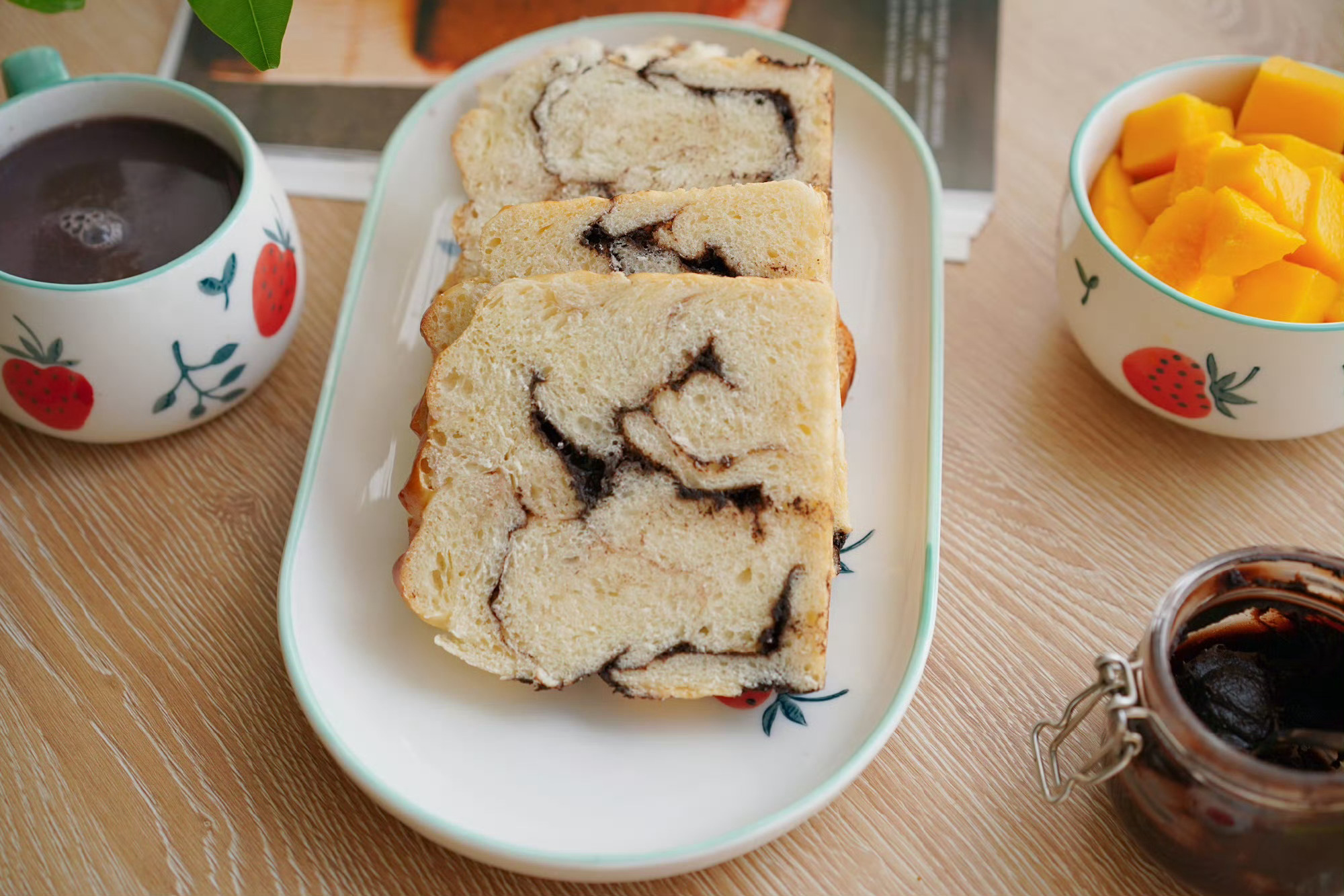 巧克力纹路吐司软fufu的,抹上巧克力酱超级好吃~