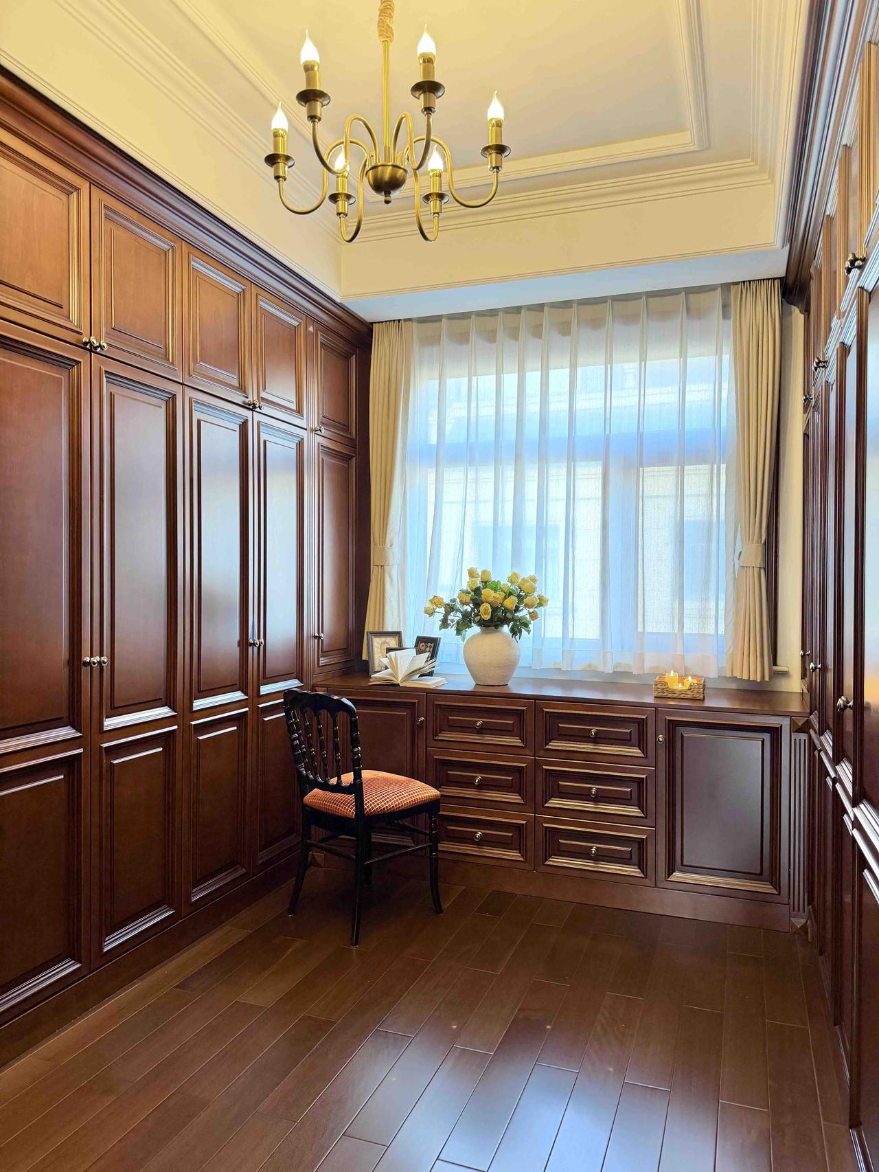 邻居说,同样的户型,怎么你家看着更贵? 听到这话,心里还是忍不住偷偷欢喜了一下。毕竟装修花了一年,辛苦没白费,能得到认可,真的很欣慰。 本期分享屋主是@大克小朋友 的家,坐标河北,266平联排,没请设计师,纯自己瞎琢磨。全屋深色美式,硬装软装共计100W,听着不便宜,但摊到三层+院子+露台,好像也还行?至于为什么显贵,我自己琢磨着,大概有这几个原因: 首先是整体风格统一。全屋选了奶茶色和棕黄色这类暖色系,美式复古的氛围一下就出来了,空间色彩也显得有层次。 其次是家具。选的是经典美式造型,再加上樱桃木天然的花纹和质感,看起来既有复古的典雅,又不失自然朴实。 再有就是细节。我觉得这是最显“贵”的地方。一些小物件,其实是提升整体质感的关键。比如门锁,我挑了很久,既要风格搭,又要有静音吸附功能;再比如衣柜拉手,反复对比后选了可爱的圆形,让深色柜子看起来多了点灵动,不显老气。 硬装做得沉静复古,细节上也一点点扣到位了,整个家就这样一点点变得有质感、有点贵气了。 他说: 放弃城市生活,却选择回十八线小城躺平,住进266㎡的复古美式别墅,朋友说我疯了,但我知道这才是生活该有的样子。 我是家居买手达人, 分享我眼中有态度的生活, 房子可以是租的, 但生活是自己的, 过好每一天, 才不会辜负以后的自己。 (图片转载自薯博主 @大克小朋友,如有侵权,请联系删除)