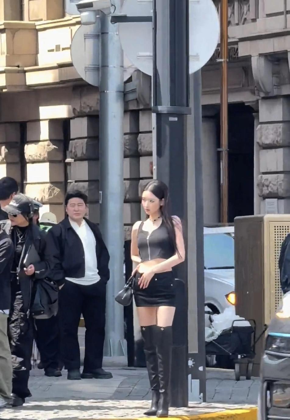在大街上看到王玉雯这样的,真的会被她的美震撼到吧?虽然这身衣服不太好看,但确实把她的身材展露无疑,这露腰小背心,短到不能短的牛仔裙和高跟过膝皮鞋搭配在一起站在街头,讲真有点怪怪的…这打扮虽然不太符合王玉雯的气质,但这身衣服带给人的视觉冲击力还是很猛的,王玉雯这蜂腰翘臀和大长腿真的会让人看呆!