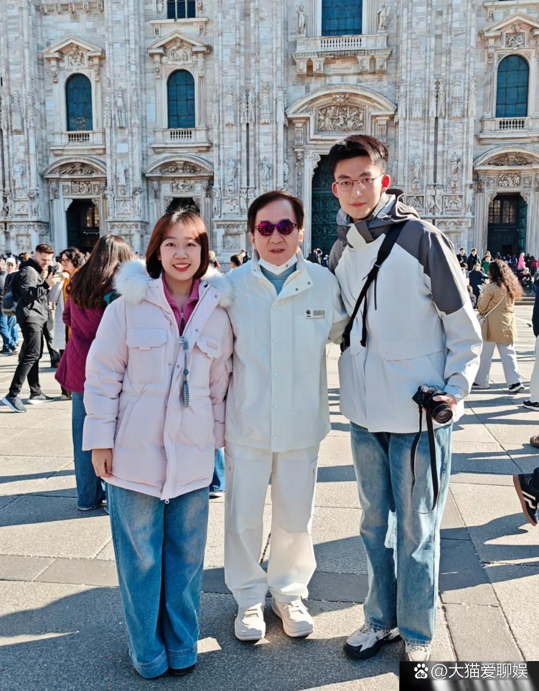 72岁的成龙跟儿子房祖名在意大利现身旅游啦,父子俩好多年后又同框咯。房祖名一身黑