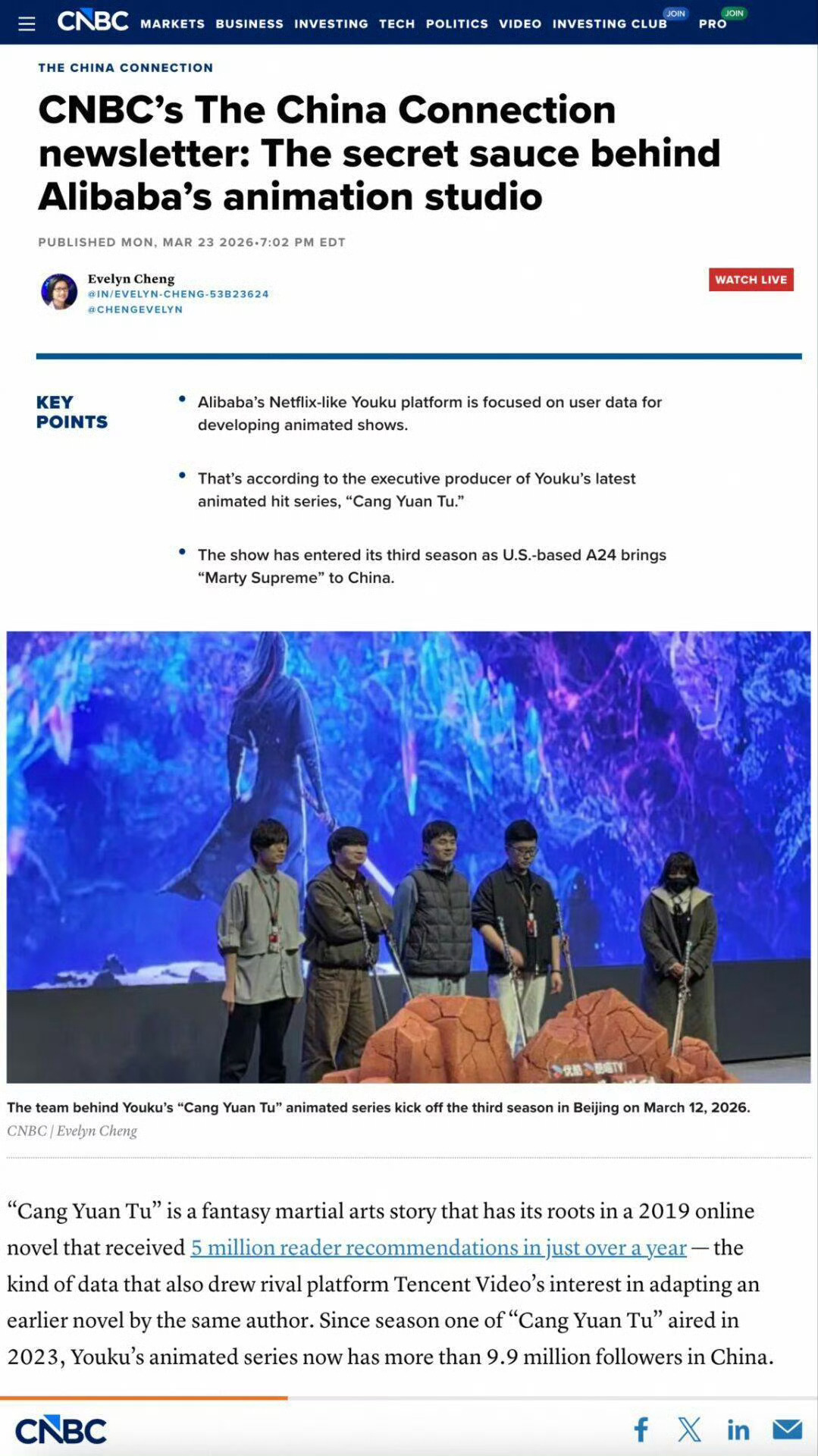 美国权威媒体报道国漫沧元图太争气了!《沧元图》凭硬实力冲出国门,被美国CNBC专题报道。看着海外评论区满屏对国漫的赞美,自豪感爆棚!水墨丹青的韵味,搭配行云流水的打戏,这就是我们国漫的顶级审美。第三季本周上线,火速围观!