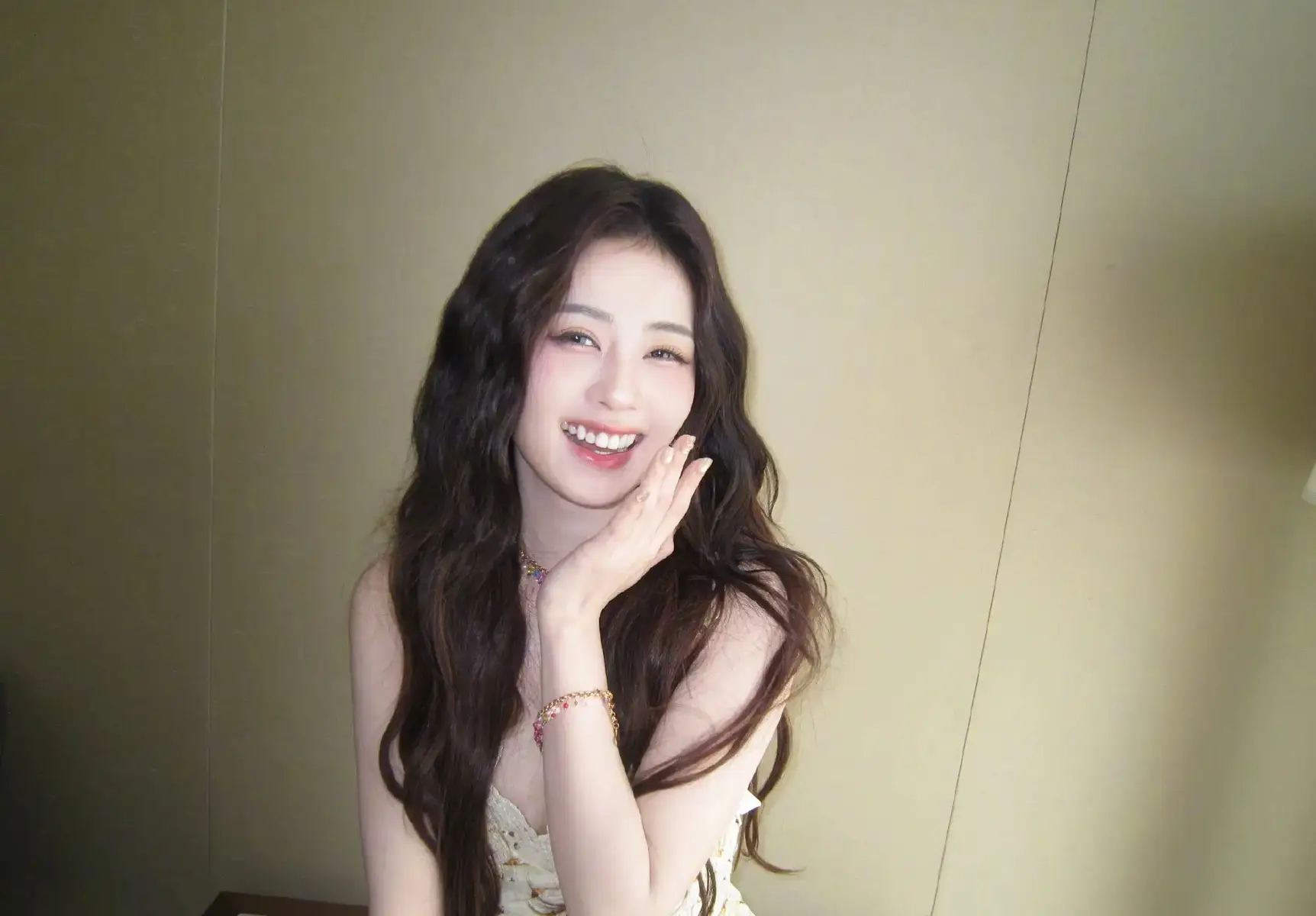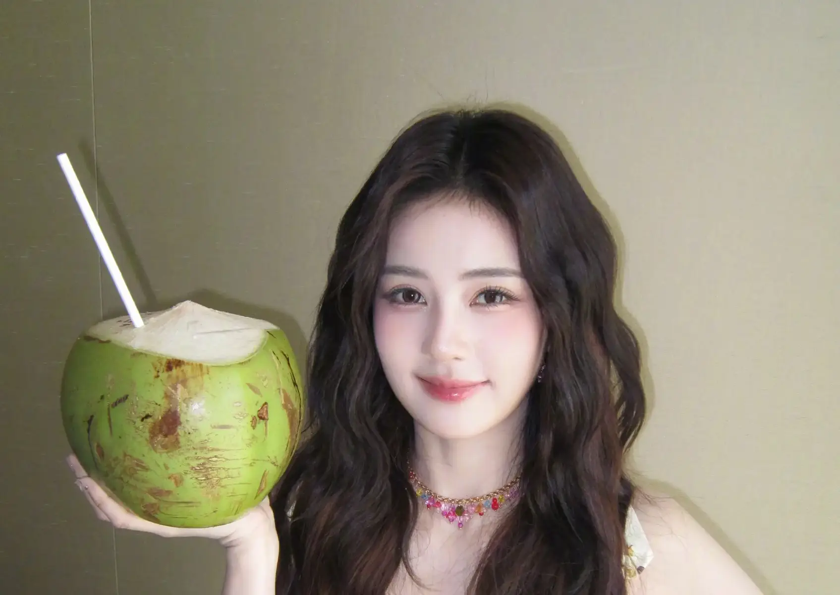 白鹿穿碎花吊带裙温柔灵动 对镜头甜笑元气满满