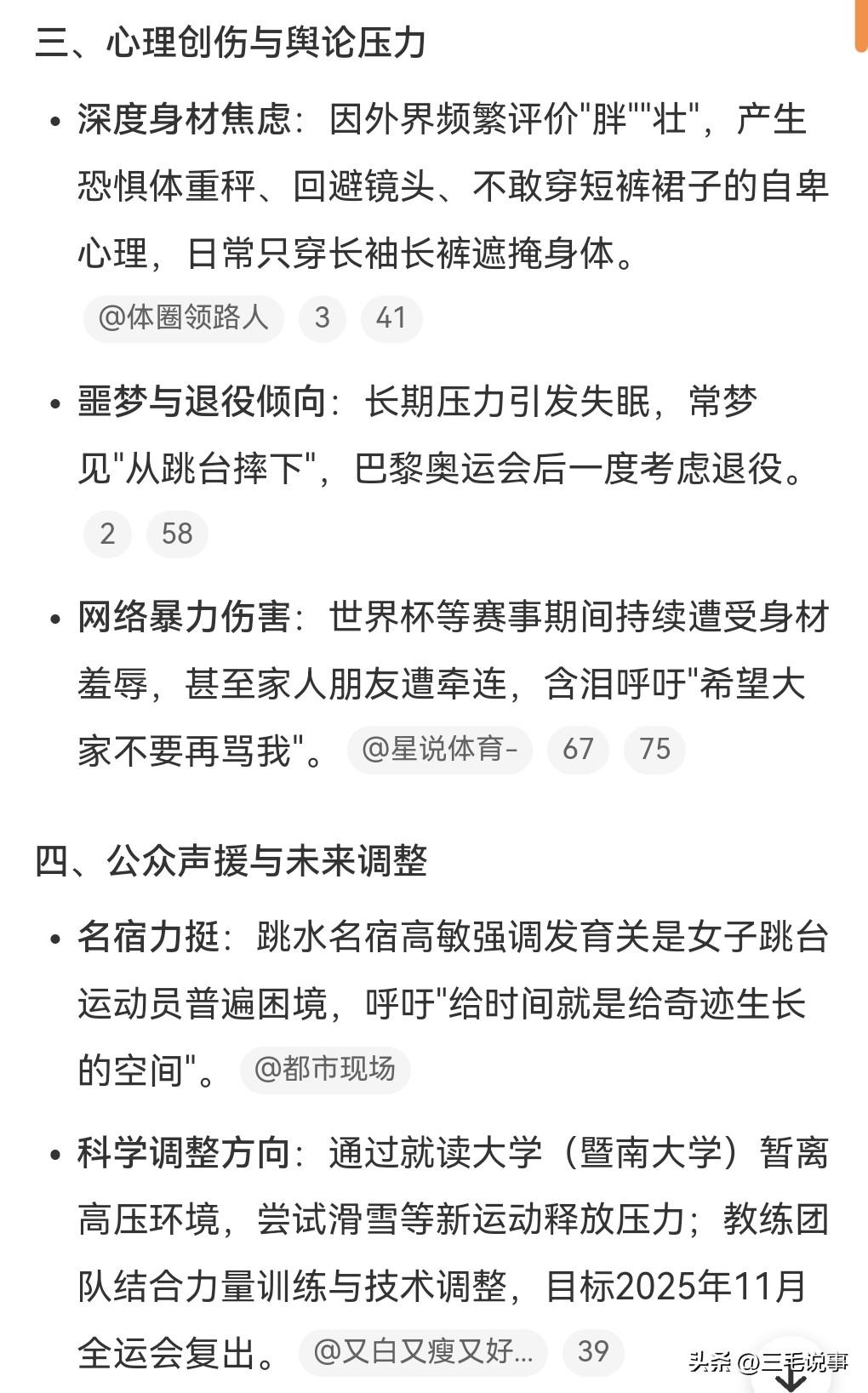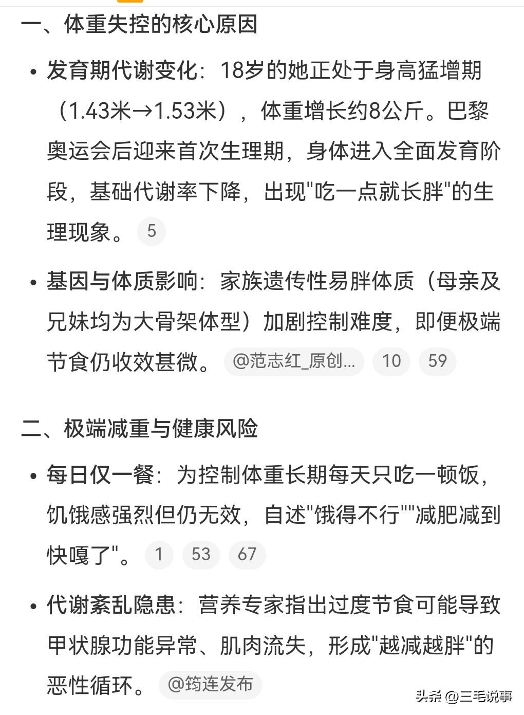 看来很多人都错怪了全红婵,有人说她胖了还能跳水还能参加奥运会吗? 很多人觉得她是不是吃太多,过于的没管理好自己,变这么胖。 3月30日热搜,全红婵说每天吃一顿但喝水就胖。 原来她是那种喝水都胖的体质。 她曾经每天只吃一顿,饿的非常的痛苦,但就是减不下去。 照这样看来,全红婵的跳水生涯有点让人担心了。 希望她越来越好。