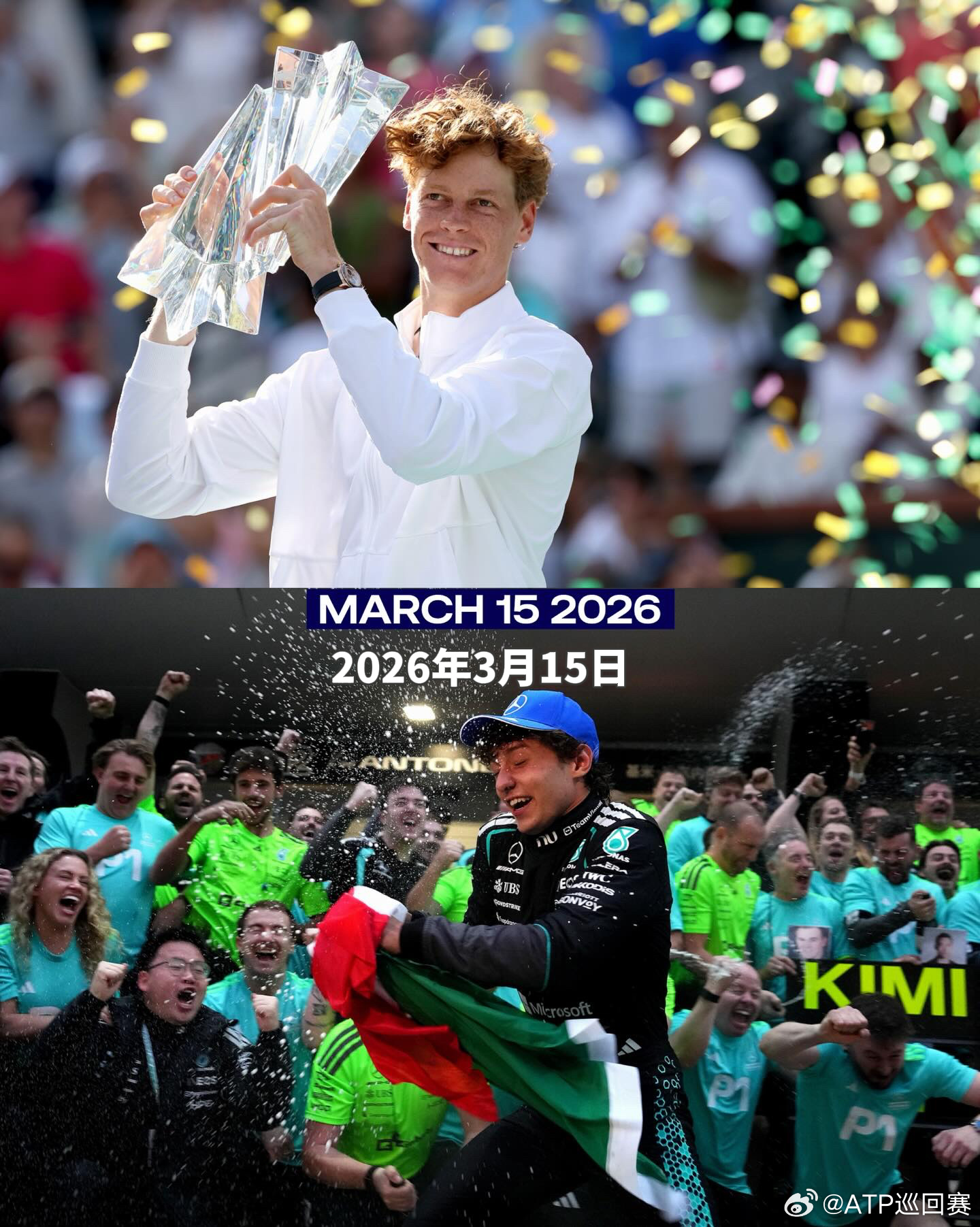 辛纳和同胞安东内利又一次同一天夺冠 👏