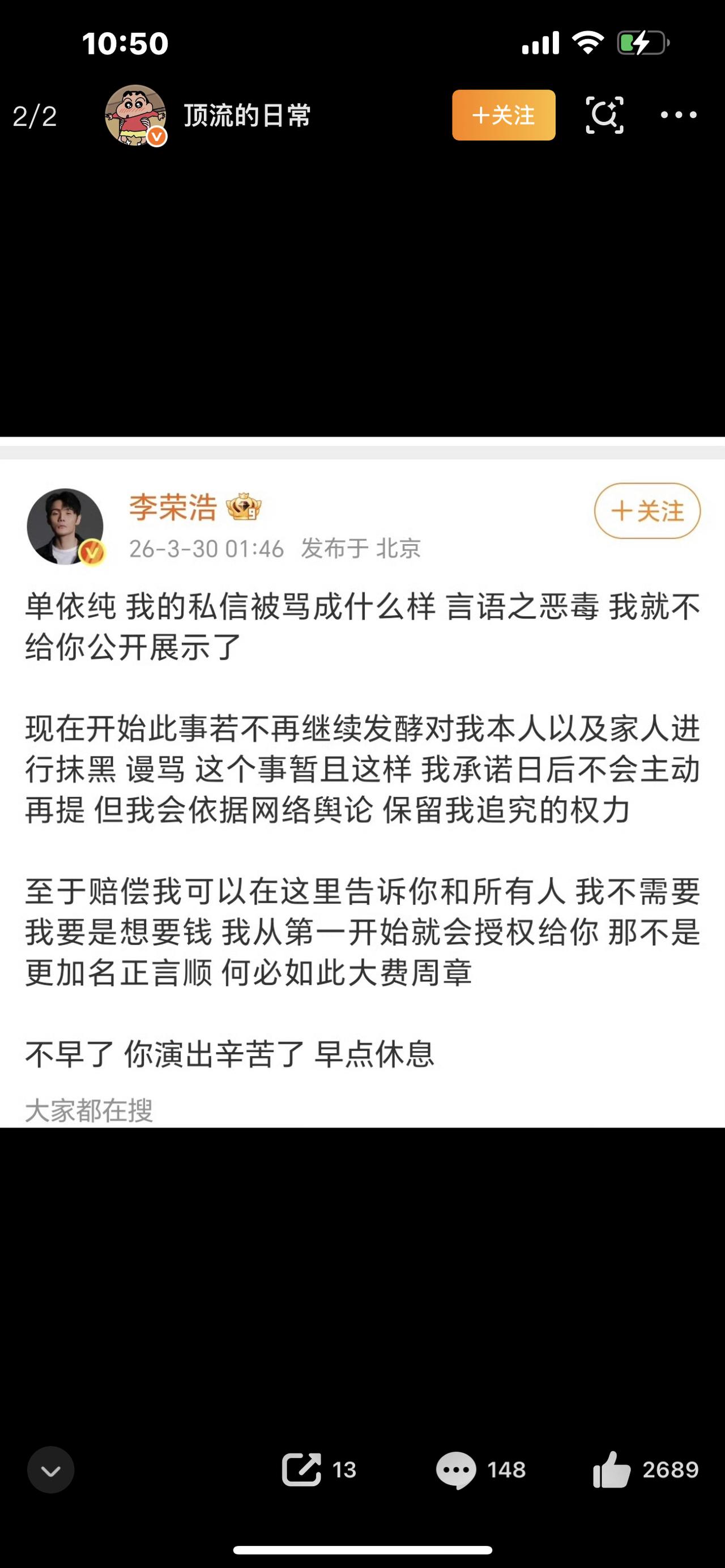 李荣浩中译中|明星维权不图钱,内娱清流还是流量套路? 家人们!刚炸锅了!李荣浩硬刚单依纯,一条维权声明被网友玩出花,李荣浩中译中直接冲上热搜!这哪里是官方通稿,分明是内娱最清醒的“反套路”宣言! 3月29日,李荣浩发长文控诉单依纯深圳演唱会未获授权,强行演唱《李白》。重点来了——他明确说不要赔偿!还补了一句:要是想要钱,从一开始就不会拒绝授权。 网友瞬间破防,把这份声明直接“中译中”: 原句:我不需要赔偿,我要是想要钱从一开始就会授权 网友翻译:给多少钱都没用,我就是不想让你唱,因为你改编得不合我心意 原句:换书皮式改编没意义 网友翻译:改得毫无诚意,别毁我原曲 原句:如何呢又能怎 网友翻译:明知侵权还硬唱,真当我好欺负? 1. 明星维权不图钱,反而被骂“太较真”? 李荣浩全程理性克制,没骂街、没卖惨,只摆事实、讲法律,连拒绝赔偿都留了体面。可评论区有人酸:“装什么清高”“不就是想蹭热度”。但对比内娱“发律师函=要钱”的潜规则,这份只护版权、不图利益的态度,反而成了清流。 2. 改编≠侵权,流量面前底线在哪? 单依纯团队辩称“申请过但没结果”,可李荣浩晒出了音著协未授权证明。更讽刺的是,现场观众喊着“情怀无价”,却没人在意原创者的合法权益——就像很多人改编歌曲博眼球,却从没想过要问作者一声。 💥 共鸣:我们骂的不是明星,是“双标”的自己 有人说李荣浩太苛刻,可细想一下: • 你自己写的文章、拍的视频,被人随便改改就拿去赚钱,你会开心吗? • 你吐槽“原创不值钱”,却从不主动支持正版;你喊着“保护创作者”,却连最基本的授权都觉得是“多此一举”。 李荣浩的硬气,恰恰戳中了大家的痛点:流量可以消费,原创不能践踏。 他用行动告诉我们:维权不是“撕破脸”,而是守住底线;尊重版权不是“矫情”,是对创作者最基本的敬畏。 现在短视频的文案都是从哪里找的呢 明星维权 怎样的才能维护原创 李荣浩的“中译中”维权,你觉得是内娱清流,还是流量套路? 评论区聊聊:如果是你辛苦创作的作品被侵权,你会像李荣浩这样,只讨公道不图钱吗? 李荣浩中译中 内娱维权天花板 版权意识觉醒 需要我把这篇文案拆成5个适配AI生成视频的分镜头脚本吗?每个镜头会配画面描述和口播台词,直接就能用。