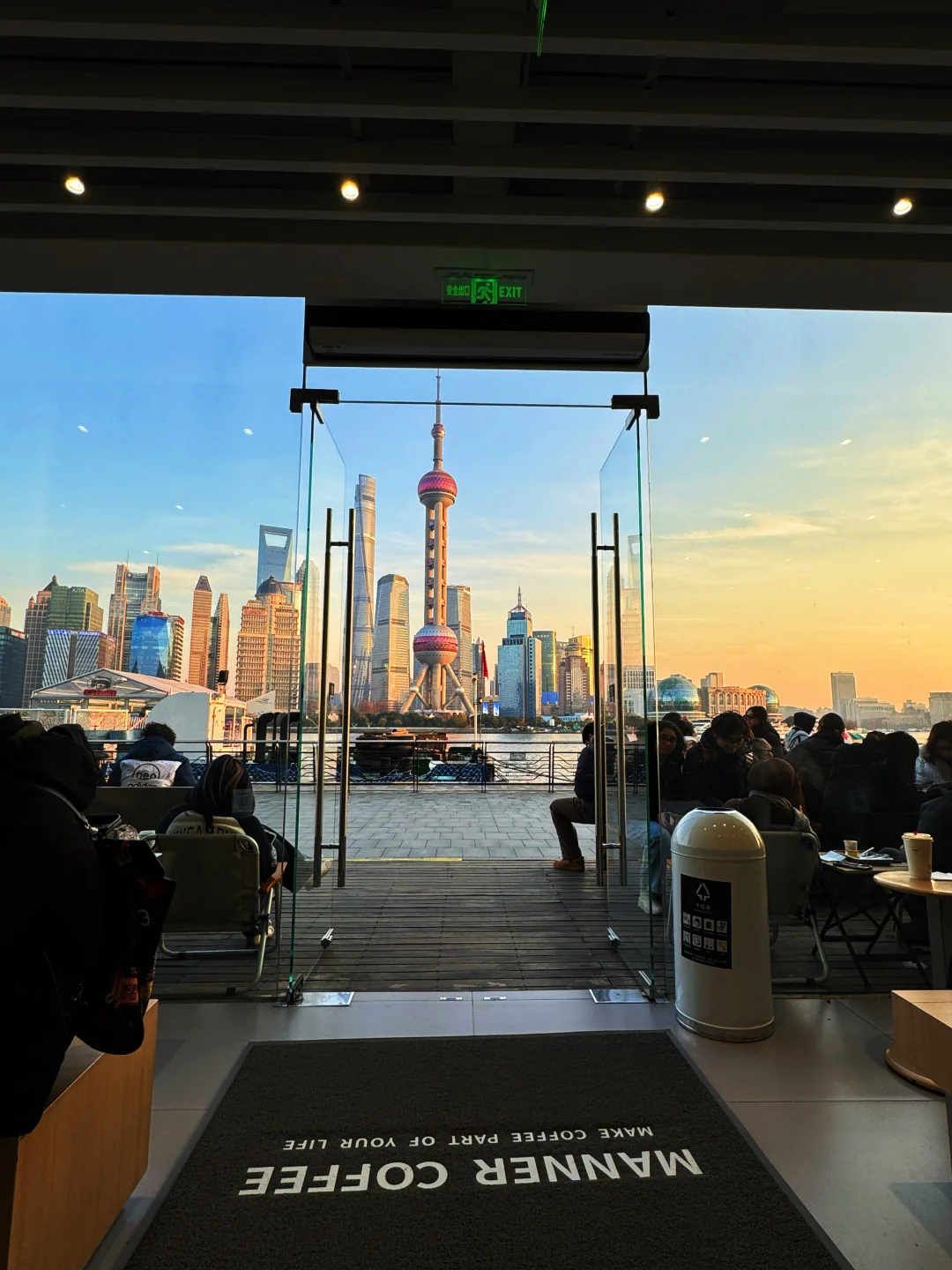 走累了,正好在 “全上海view最值的Manner” recharge一下!这家店坐落在国际客运中心,拥有无敌开阔的江景露台。