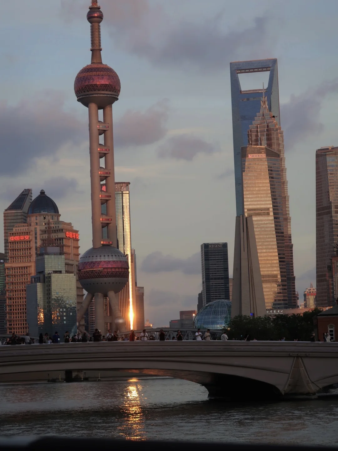 从博物馆出来,走上“法师桥”——乍浦路桥。这里是拍摄 “陆家嘴三件套+外白渡桥+邮政博物馆” 同框的上帝视角机位。