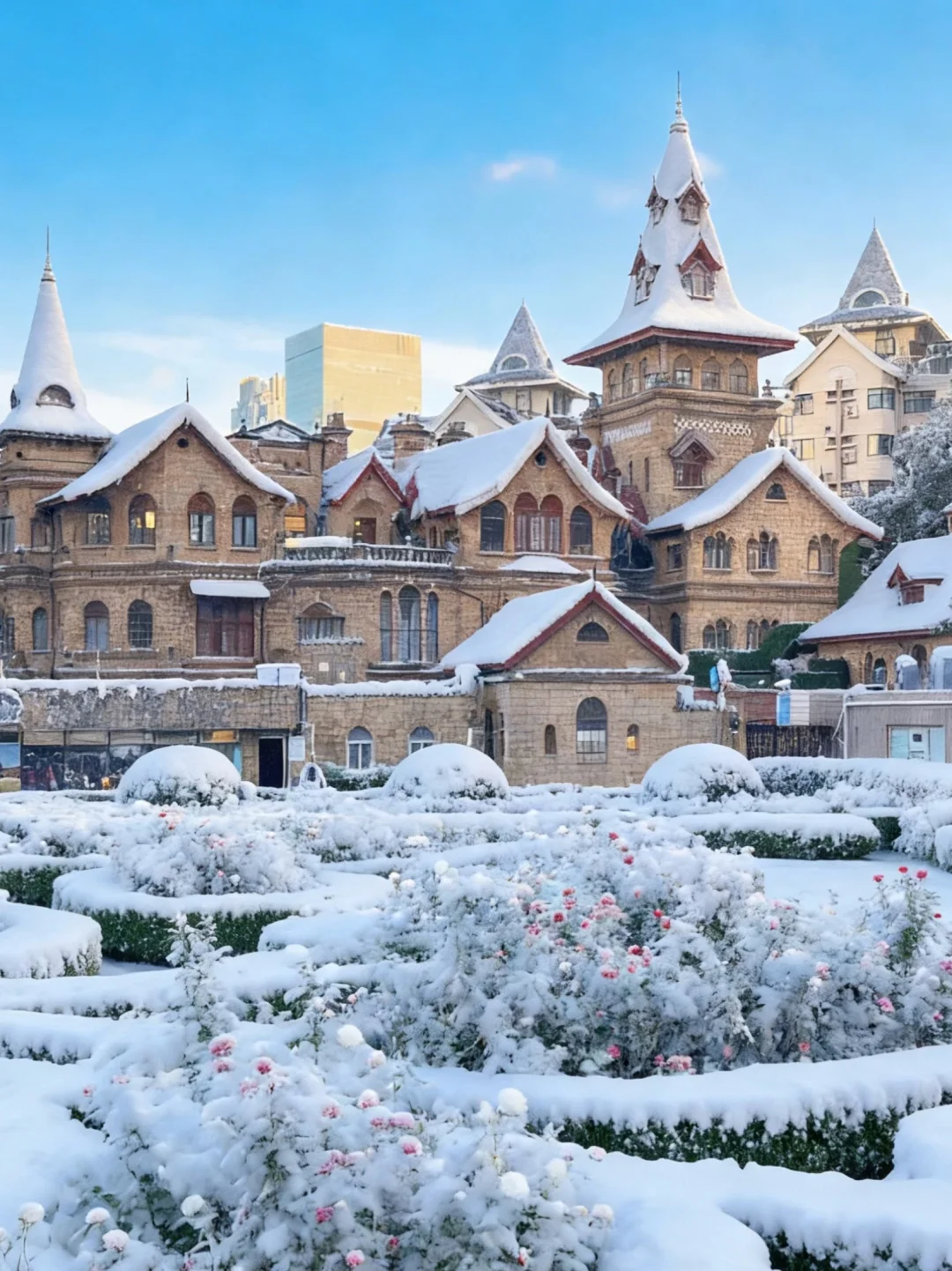 从没想过下雪上海可以这么浪漫。 古典城堡,林中宫殿,城市高楼,街上巨轮 很史诗级的浪漫了 (图片ai处理