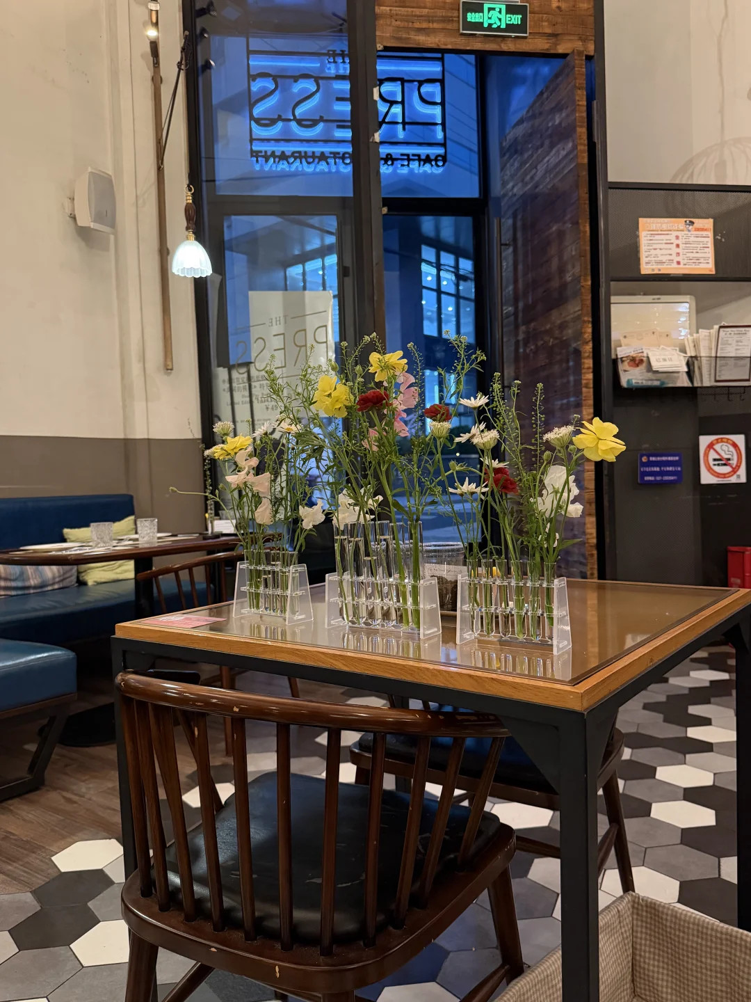 餐厅里点缀着清新小花,满眼欣欣向荣,