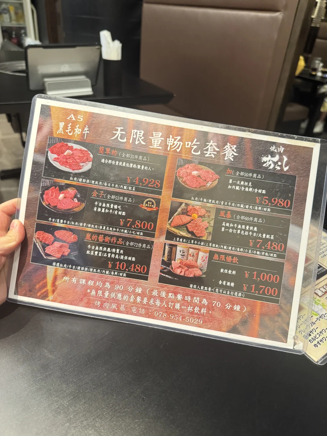 选择的是10480的精品A5和牛套餐,包含和牛、牛舌无限畅吃,海鲜,猪肉,甜品等