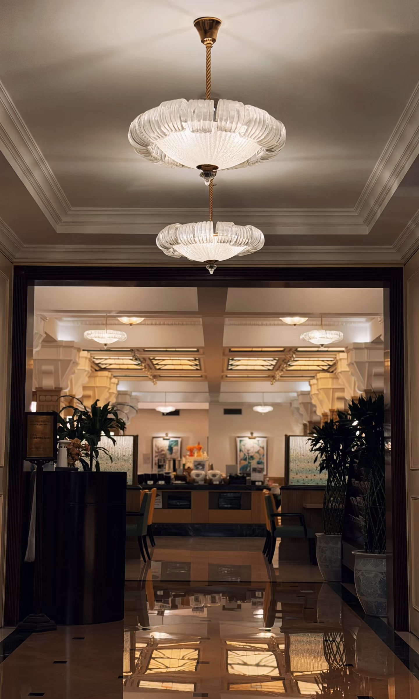 百米白色长廊,让时空自动切换0.5倍速,这里是通往旧日繁华的时空隧道。水晶吊灯投射下蜂蜜色的光,脚步落在厚实的地毯,寂静无声。这一刻是“被时空赦免”的从容