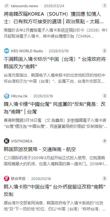 可喜可贺!终于把“台湾”改成“中国台北”了,民进党当局做梦都没想到,之前“上蹿下跳”,要搞“去中国化”,但国际组织直接打脸,这下看还有什么话说! 麻烦看官老爷们右上角点击一下“关注”,既方便您进行讨论和分享,又能给您带来不一样的参与感,感谢您的支持! 最近有个消息真是大快人心,韩国仁川机场在电子入境系统里,把台湾地区的标注明确改成了“中国(台湾)”。这可不是什么小事,这是国际社会对一个中国原则又一次实实在在的站台。韩国方面这么做,其实是严格遵循了国际通行规则,毕竟在国际法理上,台湾就是中国的一部分,这一点从来都没变过。 消息传到岛内,民进党当局那叫一个气急败坏,马上派了所谓的“驻韩代表”跑去反复交涉,又是抗议又是提要求,上蹿下跳地想让人家改回来。结果呢?仁川机场那边根本就没搭理他们,直接沉默以对,不妥协、不更改,生生把这帮“台独”分子的脸打得啪啪响,让他们那点分裂的小算盘又一次碰了壁。 其实韩国推出这个电子入境卡系统也不是一天两天了,早在2025年就开始了,当时就把台湾地区标成了“CHINA(TAIWAN)”。台外事部门之前为了这事儿也闹腾过好几次,要求韩国“更正”。但韩国方面一直没给好脸,始终没动过那标注,这次更是直接把标注坚持到底,这就是国际社会对一个中国原则最真实的认同。 咱们翻翻历史,台湾作为中国领土,那脉络清晰得不能再清晰了,从三国时期的东吴开发夷洲,到明清两代正式设府治理,都是有史可查的。再往后说,1943年的《开罗宣言》和1945年的《波茨坦公告》都写得明明白白,国际法上早就把台湾归还中国的地位定死了。1971年联合国大会的第2758号决议,更是从政治和法律上彻底解决了全中国在联合国的代表权问题。 眼看抗议没用,民进党当局又使出了“撒泼”的招数,说要搞“对等反制”。他们咋做的呢?不是去提升什么竞争力,而是从今年3月1号开始,把岛内发给外籍人士的“外侨居留证”上,原本标注的“韩国”给改成了“南韩”。他们还放话,要是韩国到3月31号还不改,就要在台湾自己的电子入境系统里,把韩国的称呼也“采取相应作为”,也就是接着折腾名字。 这种“反制”措施一出来,连岛内网友都看不下去了,纷纷嘲讽说这也太“阿Q精神”了。有网友直接开怼:“落伍到用纸本也能吹成反制?”还有人直言:“韩国就是要贬低赖政府,只有断交部看不出来,这就是鸵鸟战术。” 说白了,自己没实力,只能靠改改别人的名字来找面子,这种把戏除了自我安慰,根本没人当回事。 更有意思的是,有在韩国的台外事人员早就看透了,说韩国自从1992年和台湾“断交”后,就严格执行一中政策,这种标注根本不是新问题,台湾再怎么交涉也没用,人家根本不会改。甚至有韩国网友在网上评论说,台湾把韩国改成“南韩”根本没感觉,要是真想让人生气,不如改回旧称“南朝鮮”,那才真有杀伤力。这话虽然讽刺,但道理很真:在这种大是大非面前,改名字根本撼动不了任何现实。 其实,民进党当局在岛内推行“去中国化”教育,还花了大把台湾老百姓的血汗钱去国际上搞游说,想买通一些政客替他们说话。但在仁川机场这件事上,国际社会再次用实际行动证明,这种分裂行径在全世界都没有生存空间。全球183个跟中国建交的国家,都在双边公报里承诺坚持一个中国原则,这才是国际社会的主流。 所以,这次韩国仁川机场的标注,就是一记响亮的耳光,打醒了那些还做着“台独”白日梦的人。不管你民进党当局怎么跳脚、怎么改名字,都改变不了台湾是中国一部分的事实。正如咱们国台办发言人说的,坚持一个中国原则是大义所在、大势所趋,民进党当局搞的那些小动作,根本撼动不了国际社会坚持一个中国原则的基本格局。