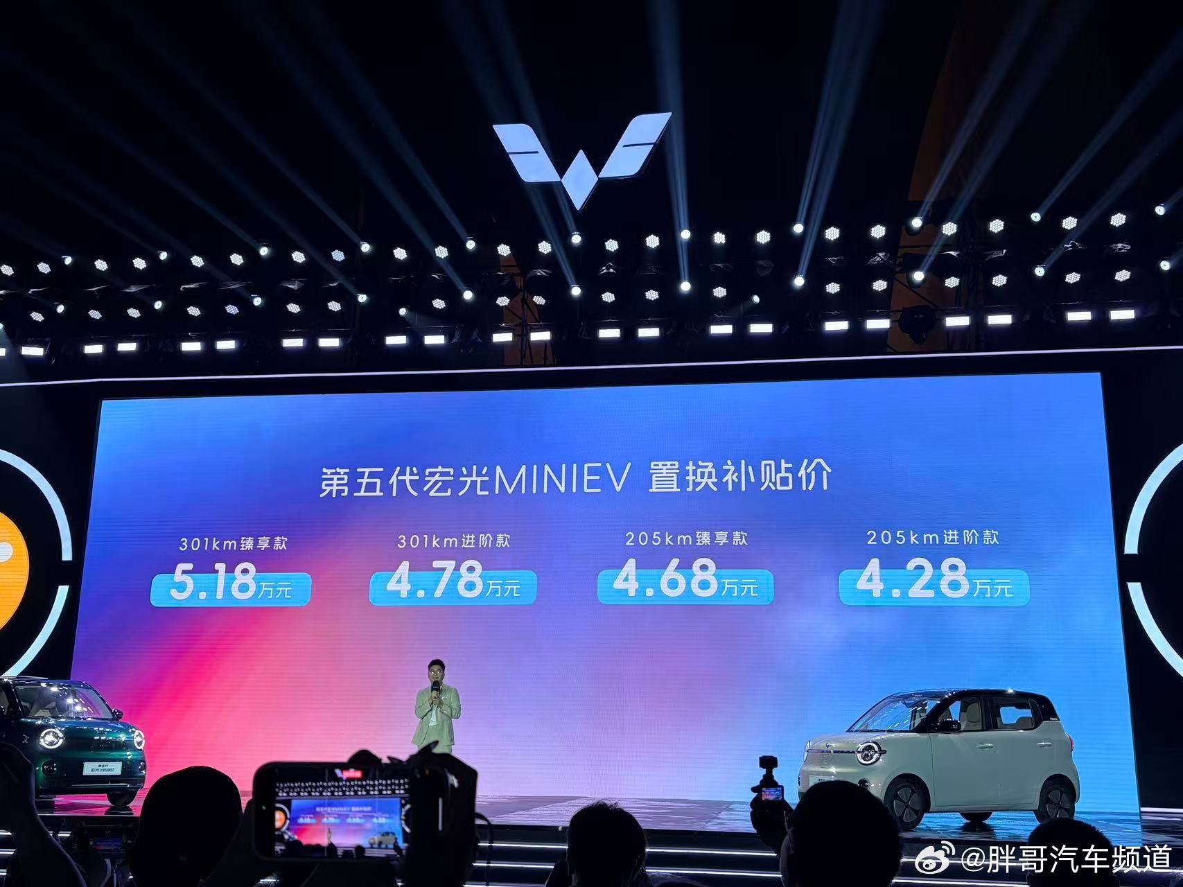 胖哥汽车频道 第五代宏光MINIEV正式上市,指导价4.48-5.48万元。作为累计销量破190万的“国民代步车”迭代,四门四座布局,配合793mm座间距与后排电动窗,优化升级了后排进出难题;智能化同步补齐短板,10.1英寸大屏支持CarPlay/HiCar互联,怀挡设计+手机远程控制告别毛坯感~;续航方面提供205km/301km双版本,支持35分钟直流快充,神炼电池+标配双气囊强化安全。4万多买四门、带大屏还能快充的代步车,你会考虑入手作为家庭第二辆车吗?还是觉得空间太小不如加钱上A0级?评论区聊聊!第五代宏光MINIEV42800元起玩趣上市