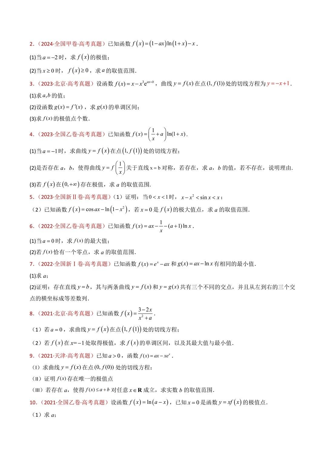 我愿称之为高中导数进步最快的方式! 。【248页】历年导数经典考题大汇总!全是经典好题!