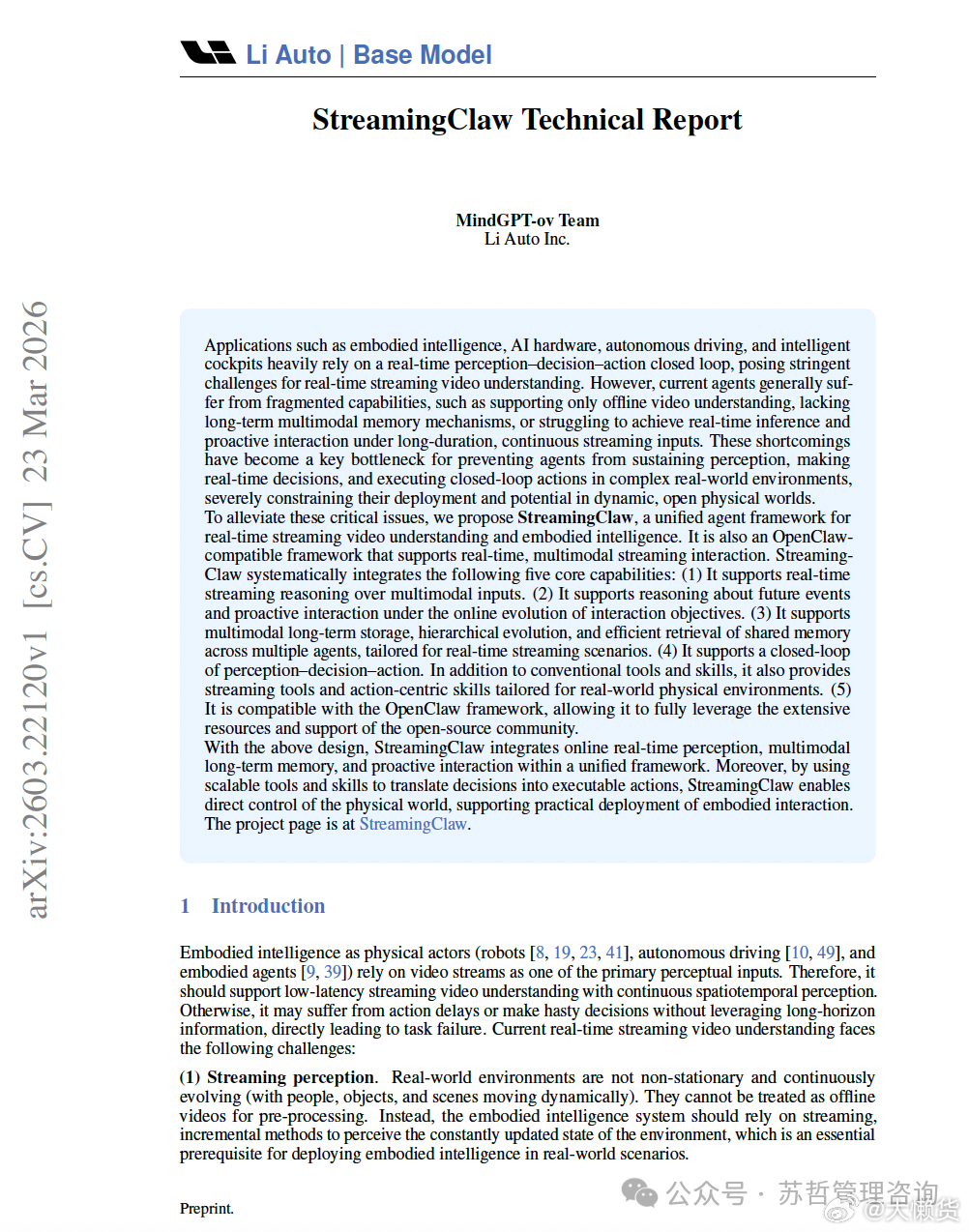 小龙虾上理想汽车具身视频!StreamingClaw 是理想汽车 MindGPT-ov 团队提出的、兼容 OpenClaw的实时流式视频理解与具身智能统一智能体框架,能做到离线推理,长时记忆,实时交互