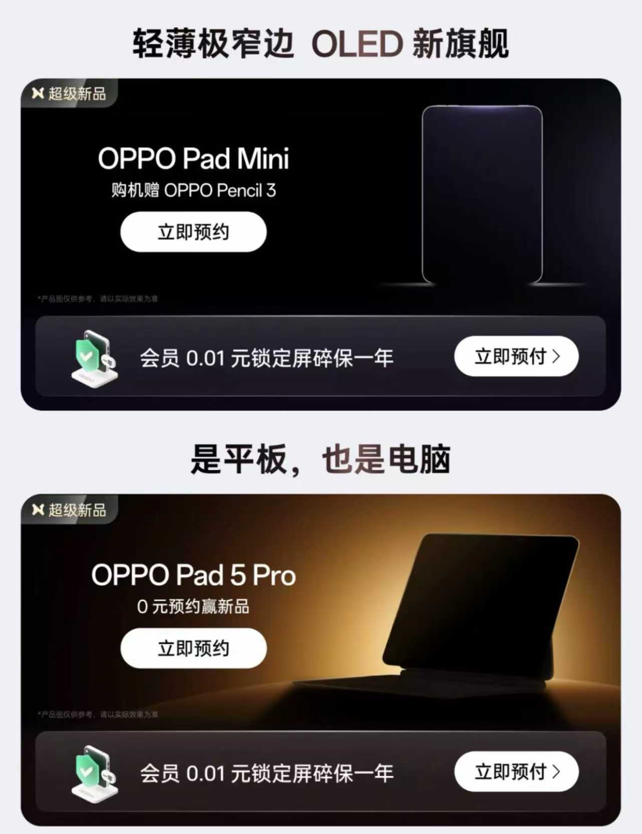 OPPO Pad 5 Pro和Pad mini也开启预约了,4月份黑厂的新品也是