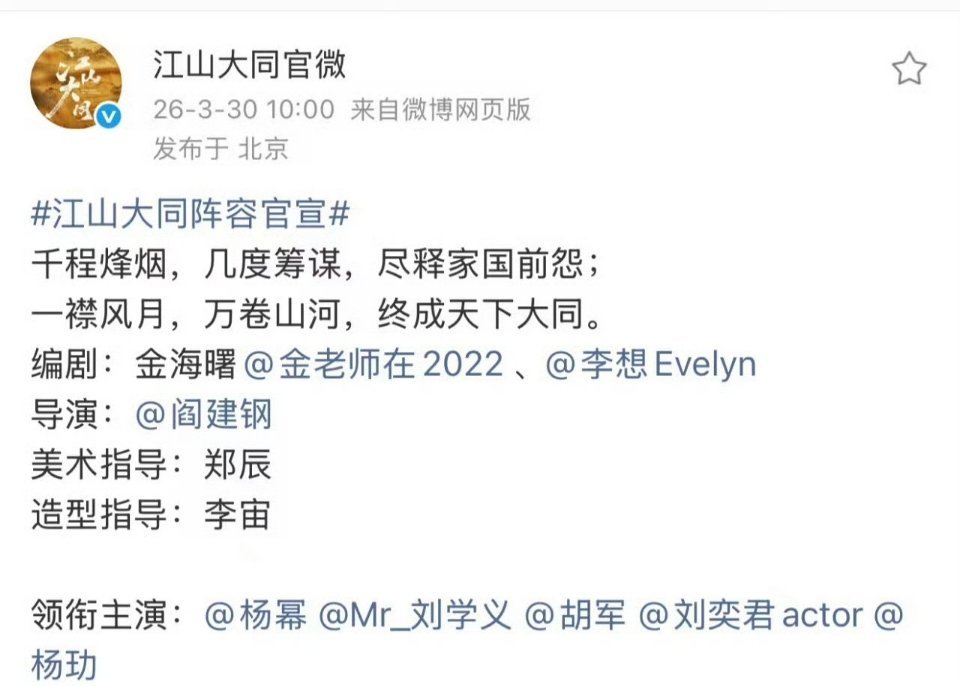 85花同男主可以鉴咖位吗唐嫣念无双,另起一行杨幂江山大同,平行一番在前江山大同阵容官宣