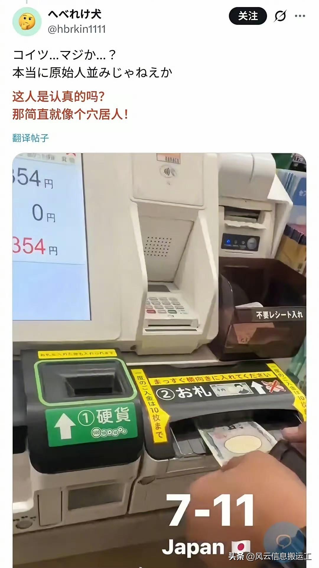 日本网友和泰国网友在网上打起来了! 日本人嘲笑泰国游客不会使用日本“先进”的现金支付机,嘲笑泰国人是原始人。 泰国网友表示,泰国早就使用电子支付了,使用现金支付的日本人才是原始人。