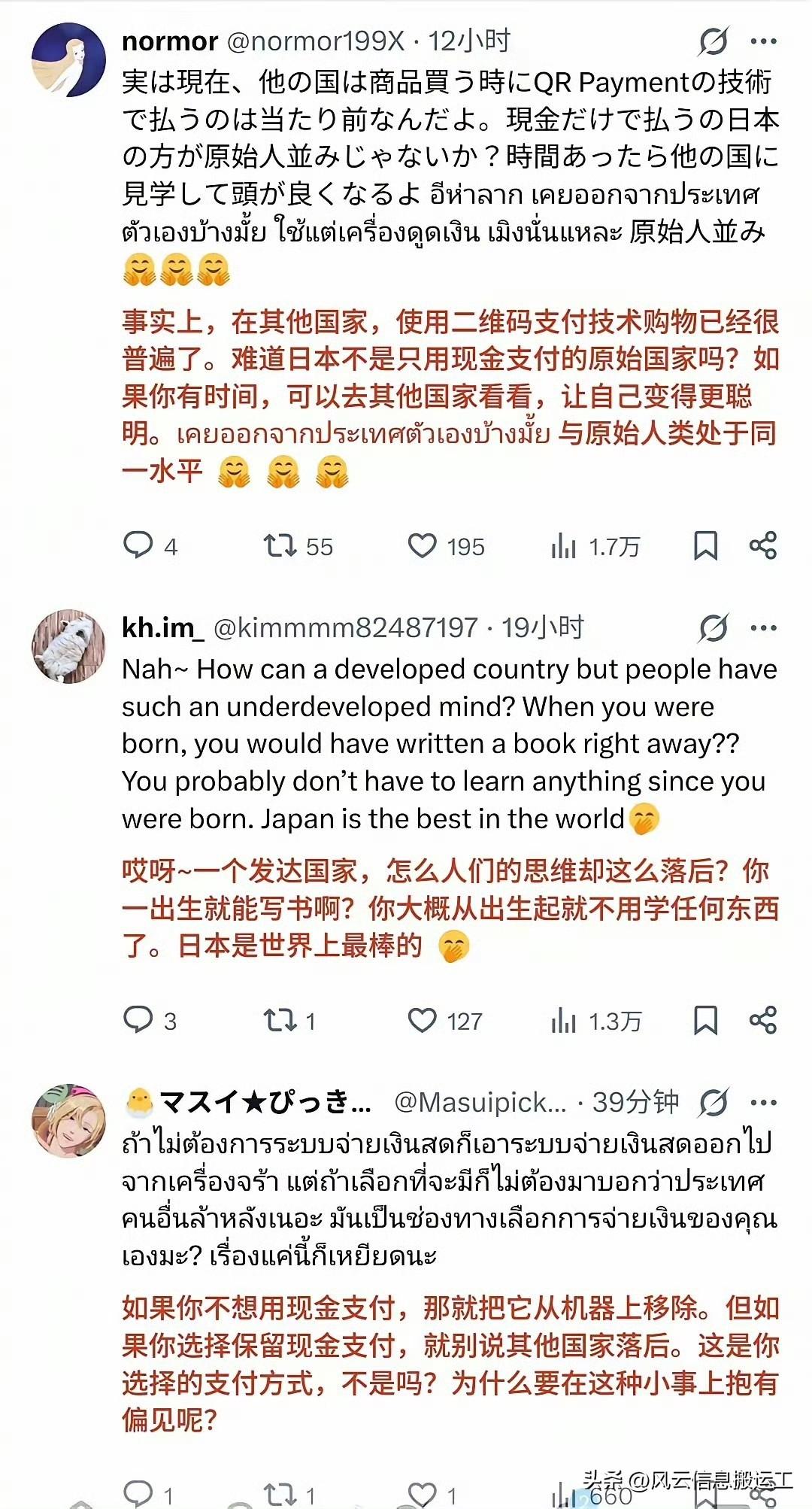 日本网友和泰国网友在网上打起来了! 日本人嘲笑泰国游客不会使用日本“先进”的现