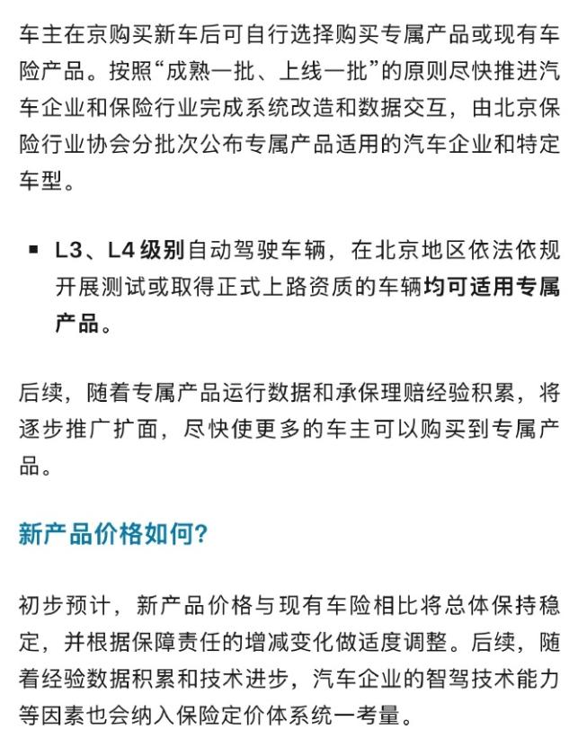 智驾车专属保险来了,适配L2—L4,北京率先启动,保险限制:L2适用新车,L3、L4有上路资质的车都可以买。现在还在摸索阶段,后续数据和理赔经验丰富后,再推出更丰富的保险产品。有没有可能,以后选智驾从出险率,保险价格等数据上盘盘门道?问问大家,假如您的车一年保险5000元,您愿意再花多少钱买智驾车专属险?【来自懂车帝车友圈】