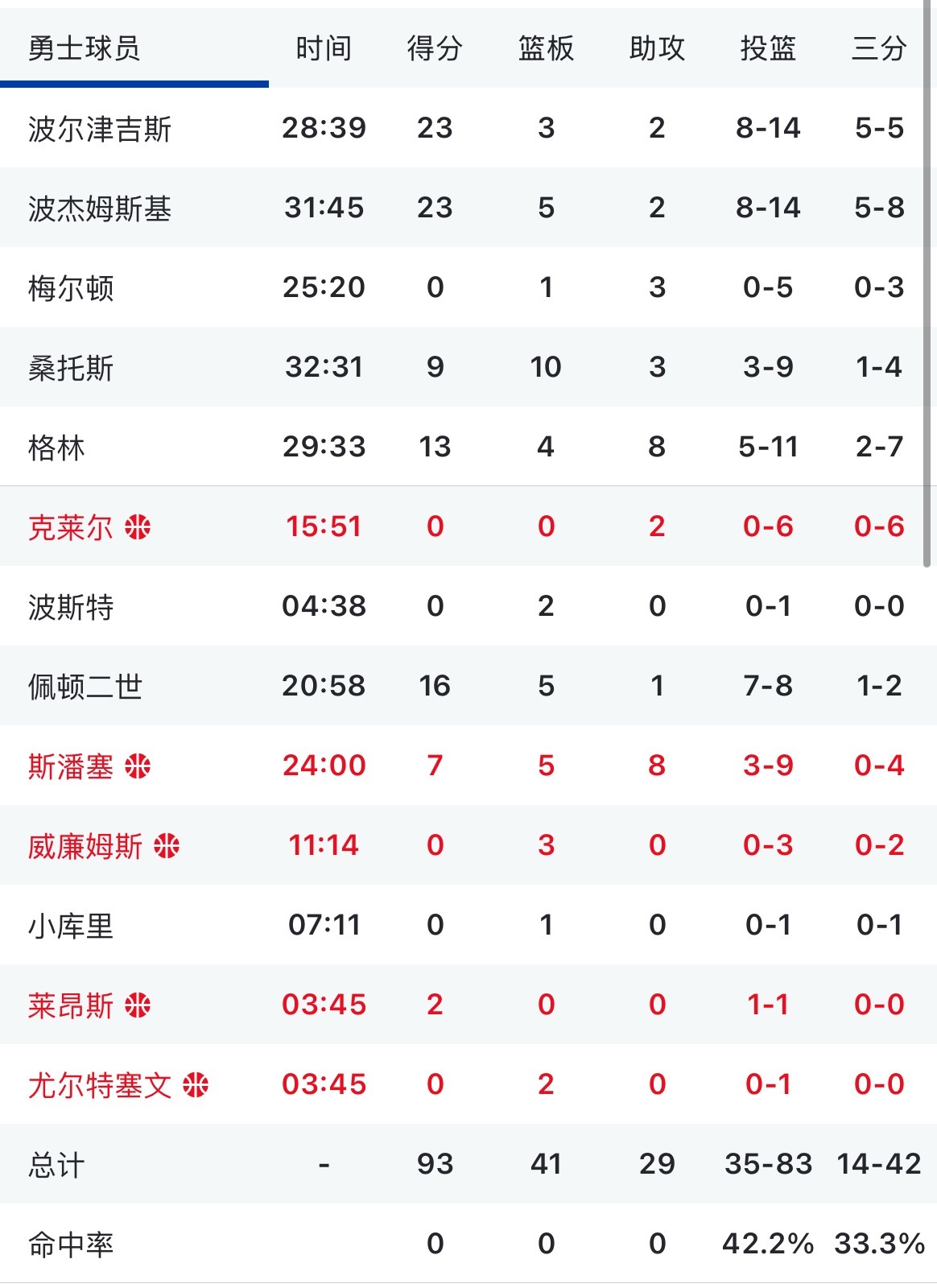 勇士不敌掘金结束三连胜今天大波小波数据一样 23分投篮14中8追梦13分4篮板8助攻 小佩顿16分投篮8中7 桑托斯9分10篮板3助攻 梅尔顿今天迷失0分数据
