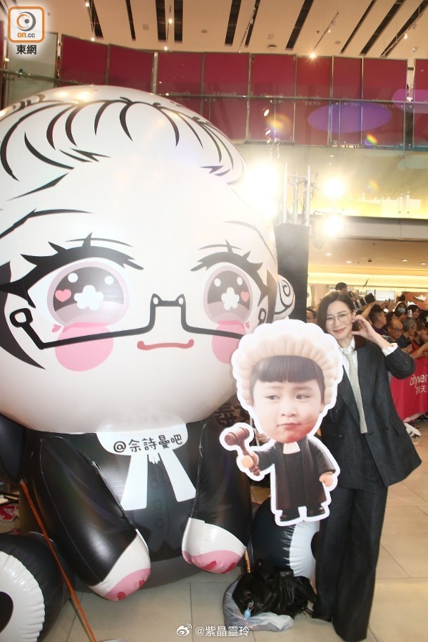 視后佘詩曼、陳煒、周嘉洛、譚耀文、蔣祖曼、戴祖儀及劉倬昕等昨日現身宣傳新劇《正義女神》,已故藝人許紹雄的女兒許惠菁及文頌嫻以特別嘉賓身份出席,吸引大批粉絲到場支持,場面墟冚!當中阿佘的粉絲帶同卡通法官造型的巨型氣球及阿佘兒時樣子的法官人形紙板到場支持,十分有心思。