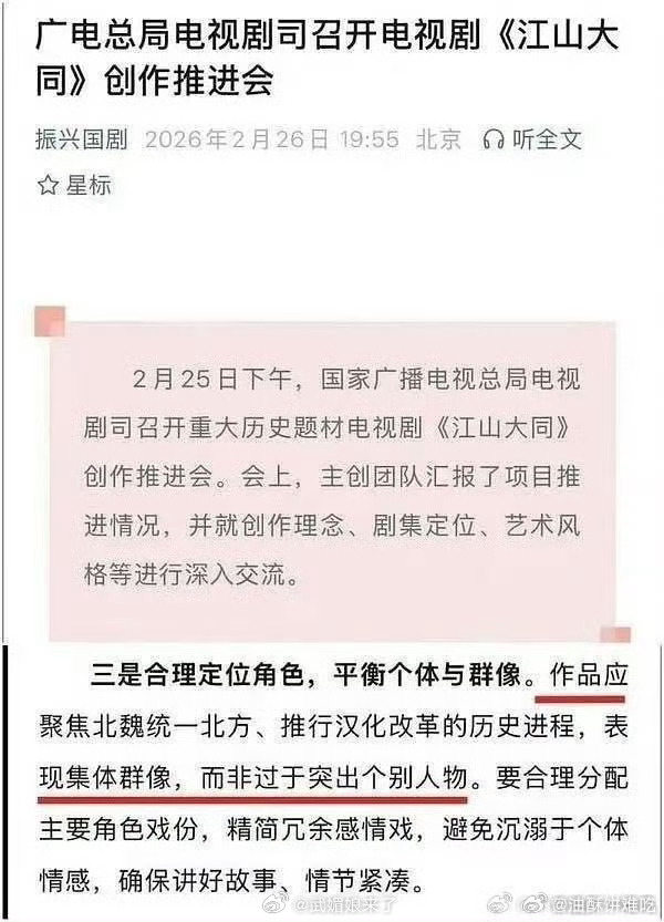 杨幂粉丝因为《江山大同》官宣没有单独一行官宣在维权,之前振兴国剧发文说这部剧是集体群像,非过于突出个别人物