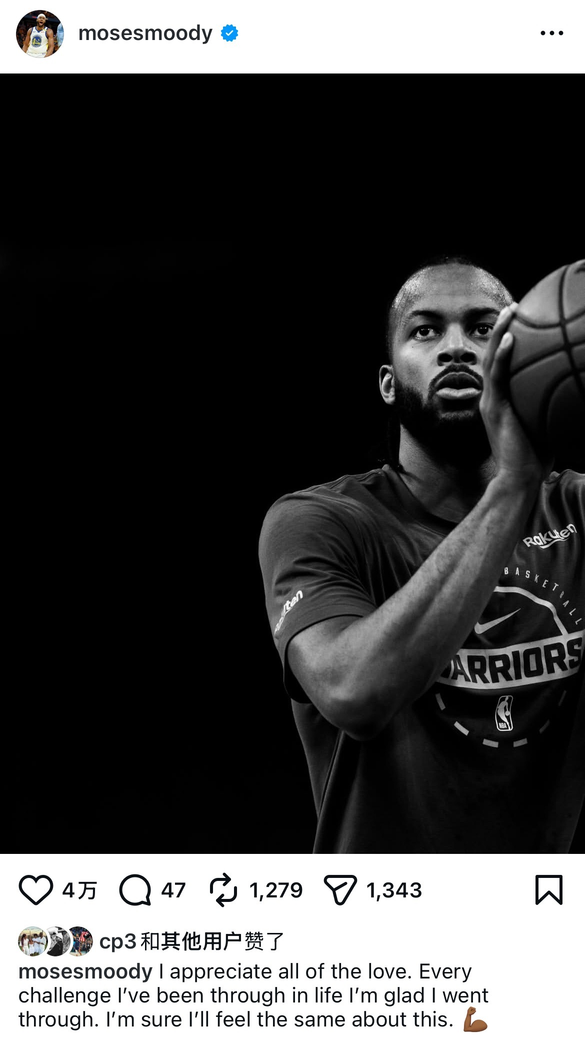 穆迪更新个人社媒:“非常感激所有的关爱。人生中经历的每一次挑战,我都庆幸自己经历过。相信这次也不例外💪🏽”
