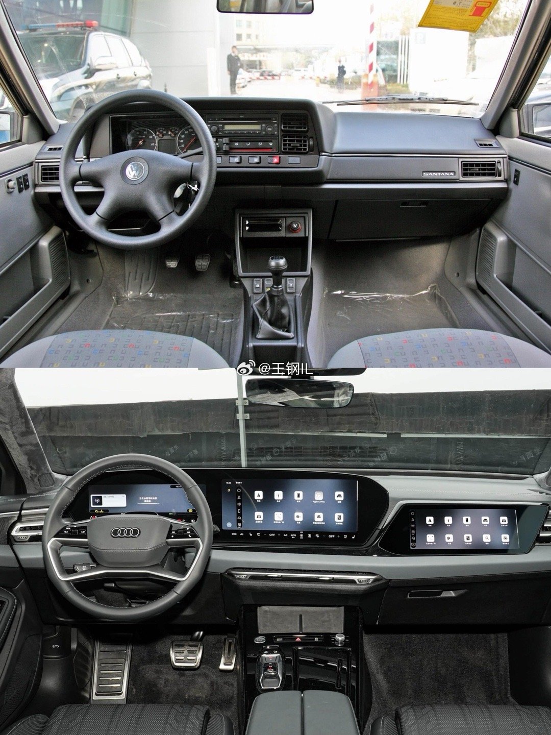 新款A6内饰设计像是在致敬大众桑塔纳,奥迪新款A6仪表台设计布局,以及方向盘的粗