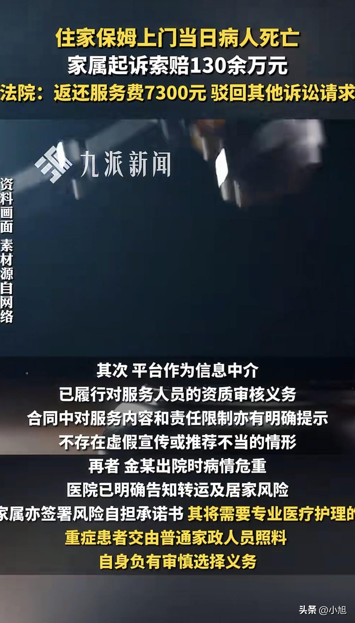 因为132万不是小数目。人死了总得有人负责。家属把责任推给保姆,推给平台,唯独没问自己一句:一个昏迷的重症病人,为什么不送护理院,而要请个普通家政回家?