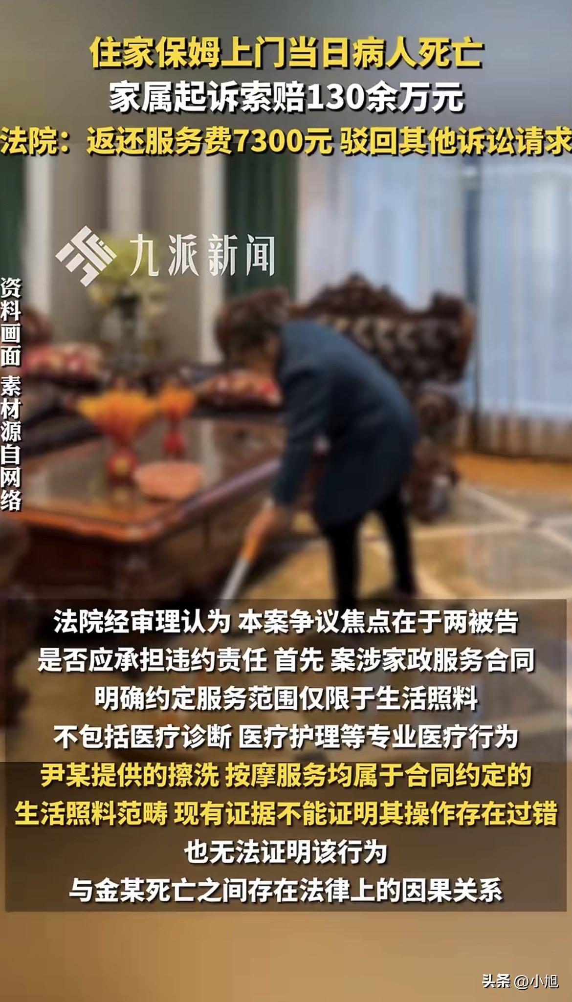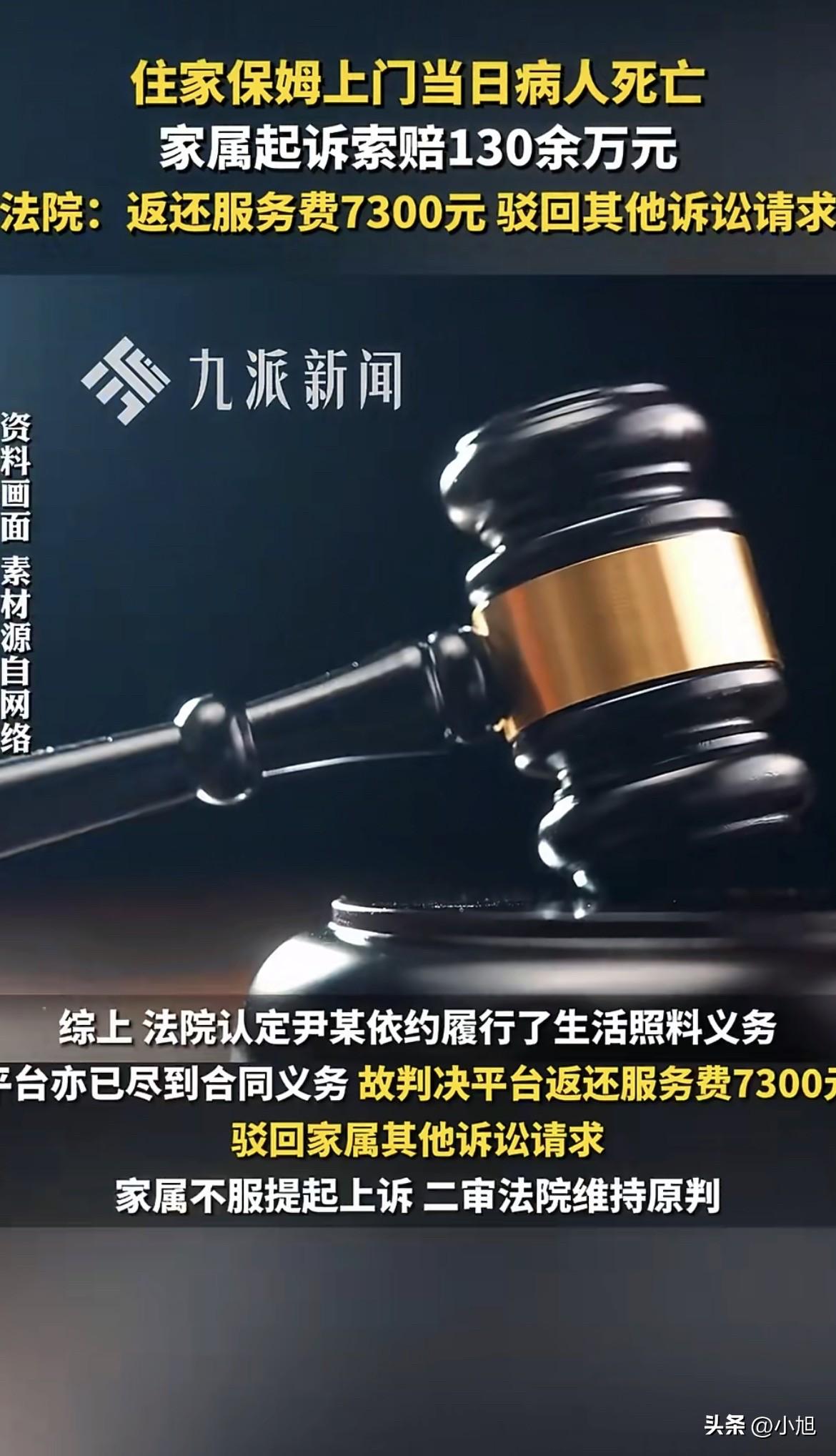 但这件事对尹某来说,估计一辈子都有阴影。第一天上门,人还没认全,活儿还没干完,人就没了。不管法院怎么判,她心里那道坎过不过得去,没人知道。